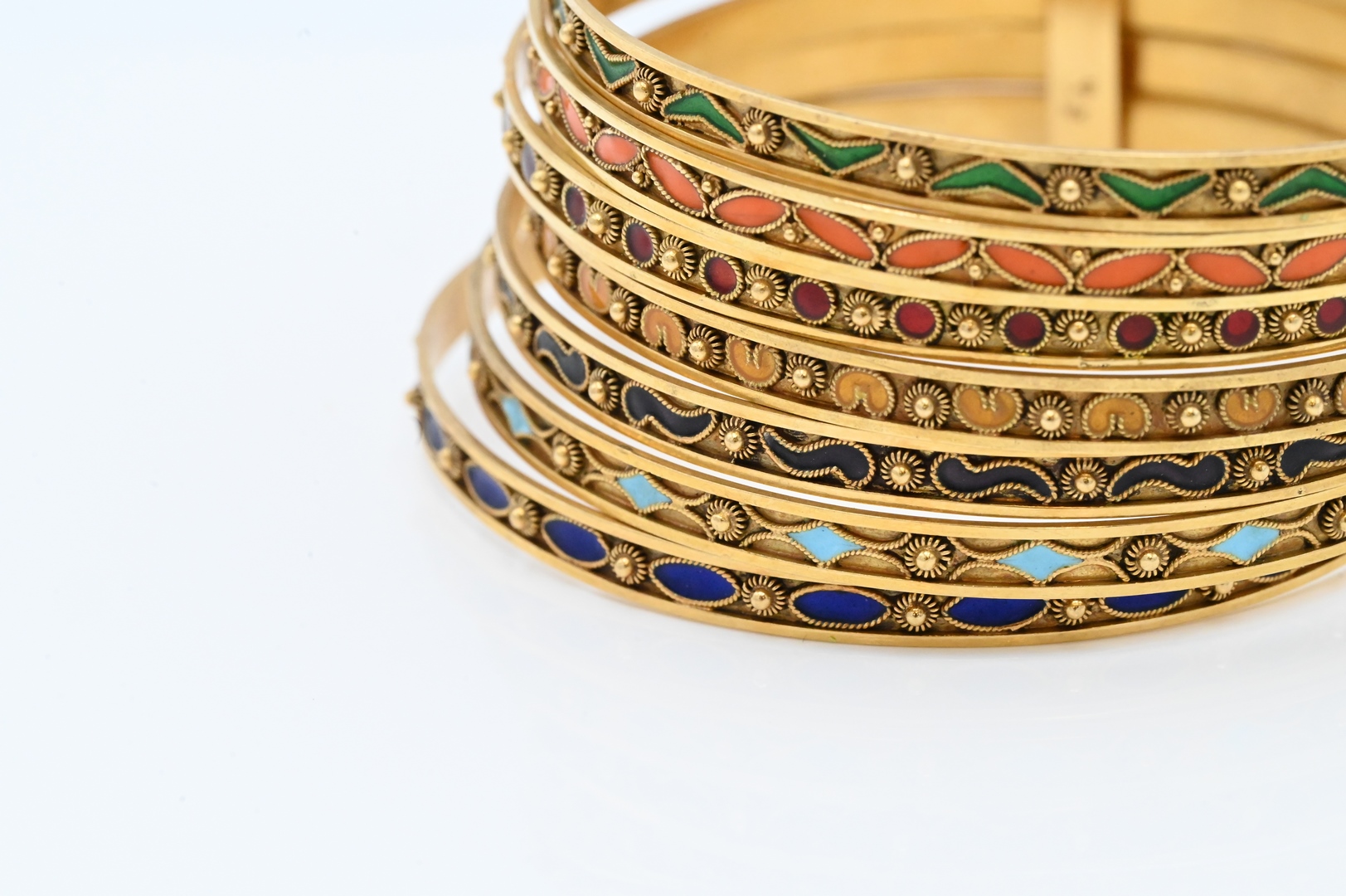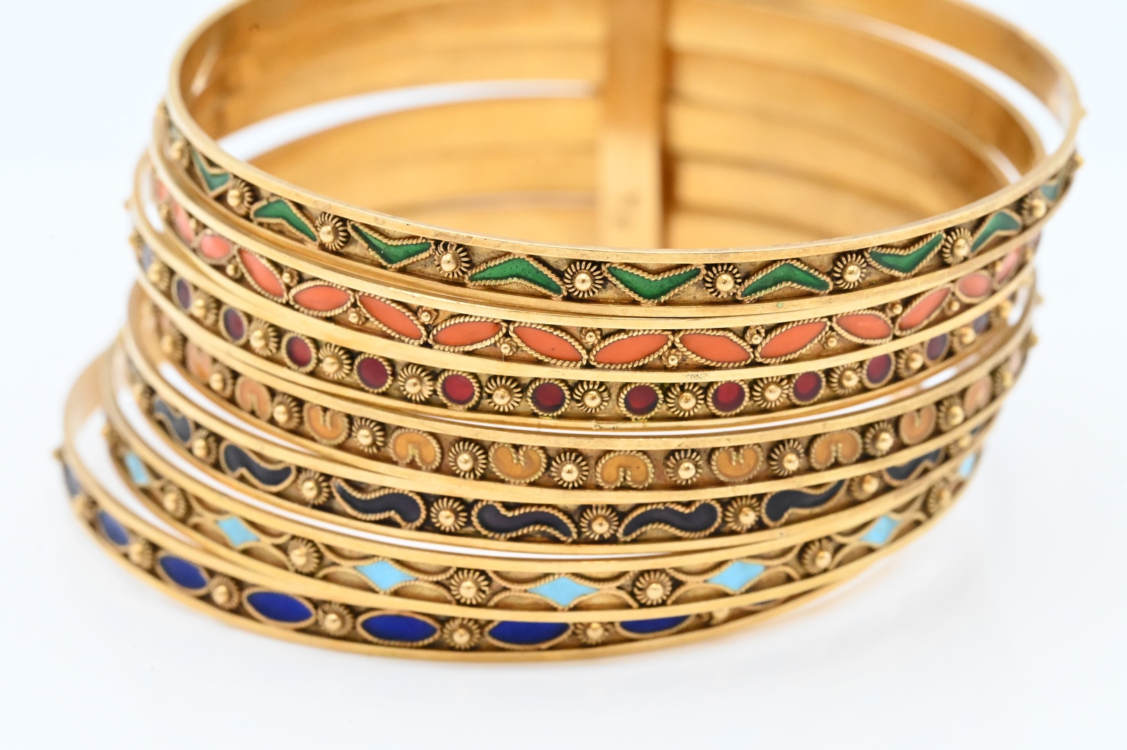 Lot 87: Set of Seven 18 Karat Yellow Gold Bangle Bracelets