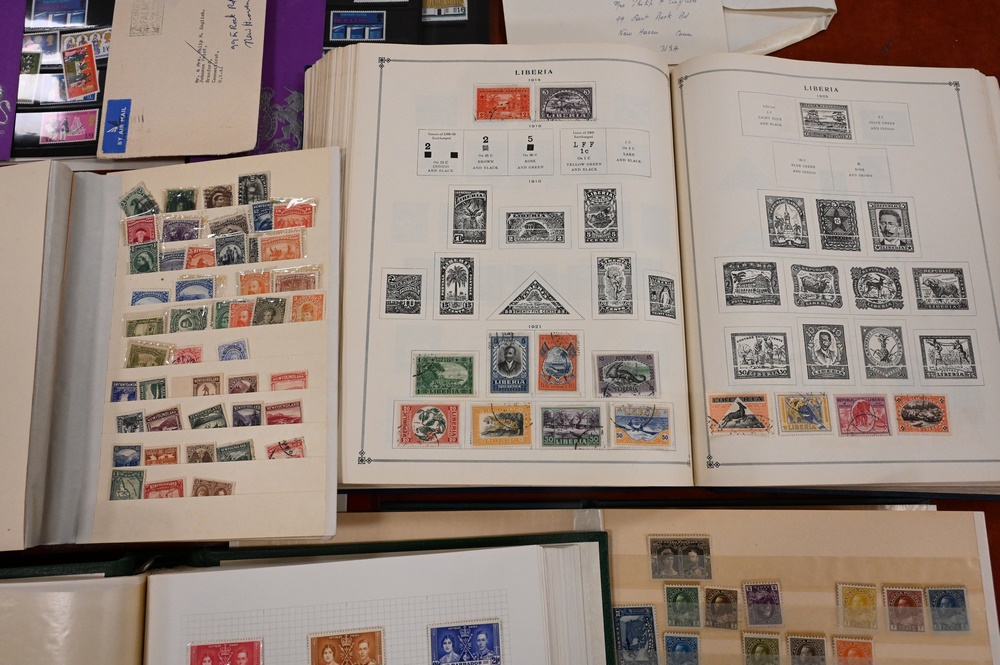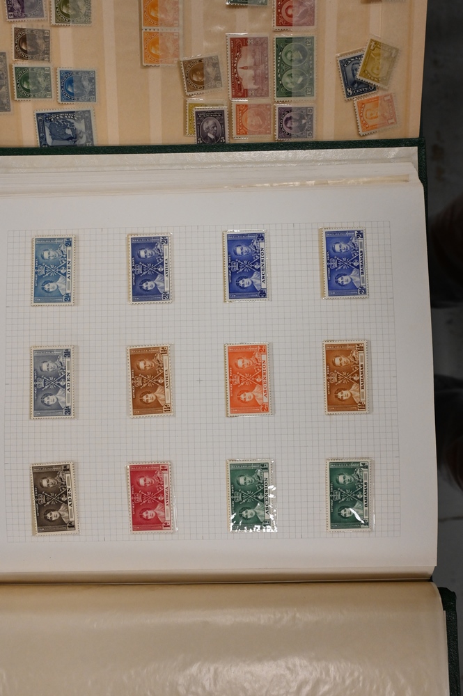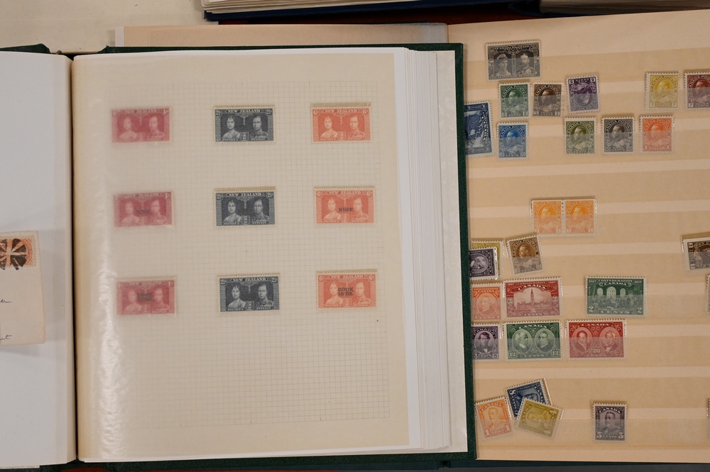 Lot 87: Small Grouping of Worldwide Foreign Stamps, to include an International Junior stamp album containing some United States stamps, along with some stock books containing Canada, Newfoundland, and British Colonies.