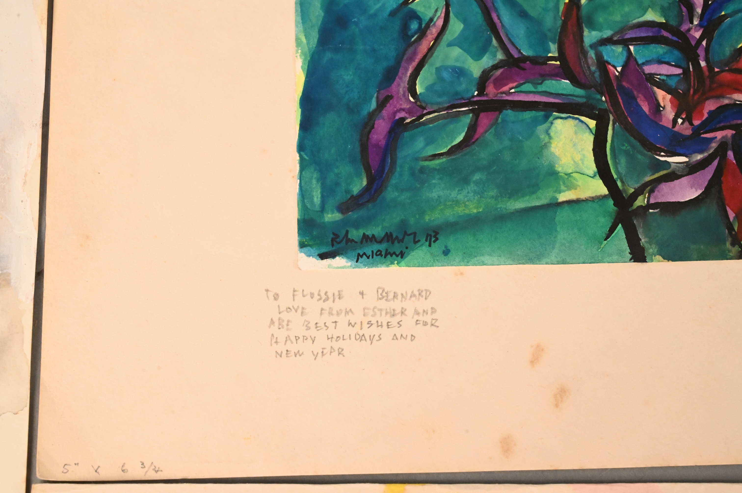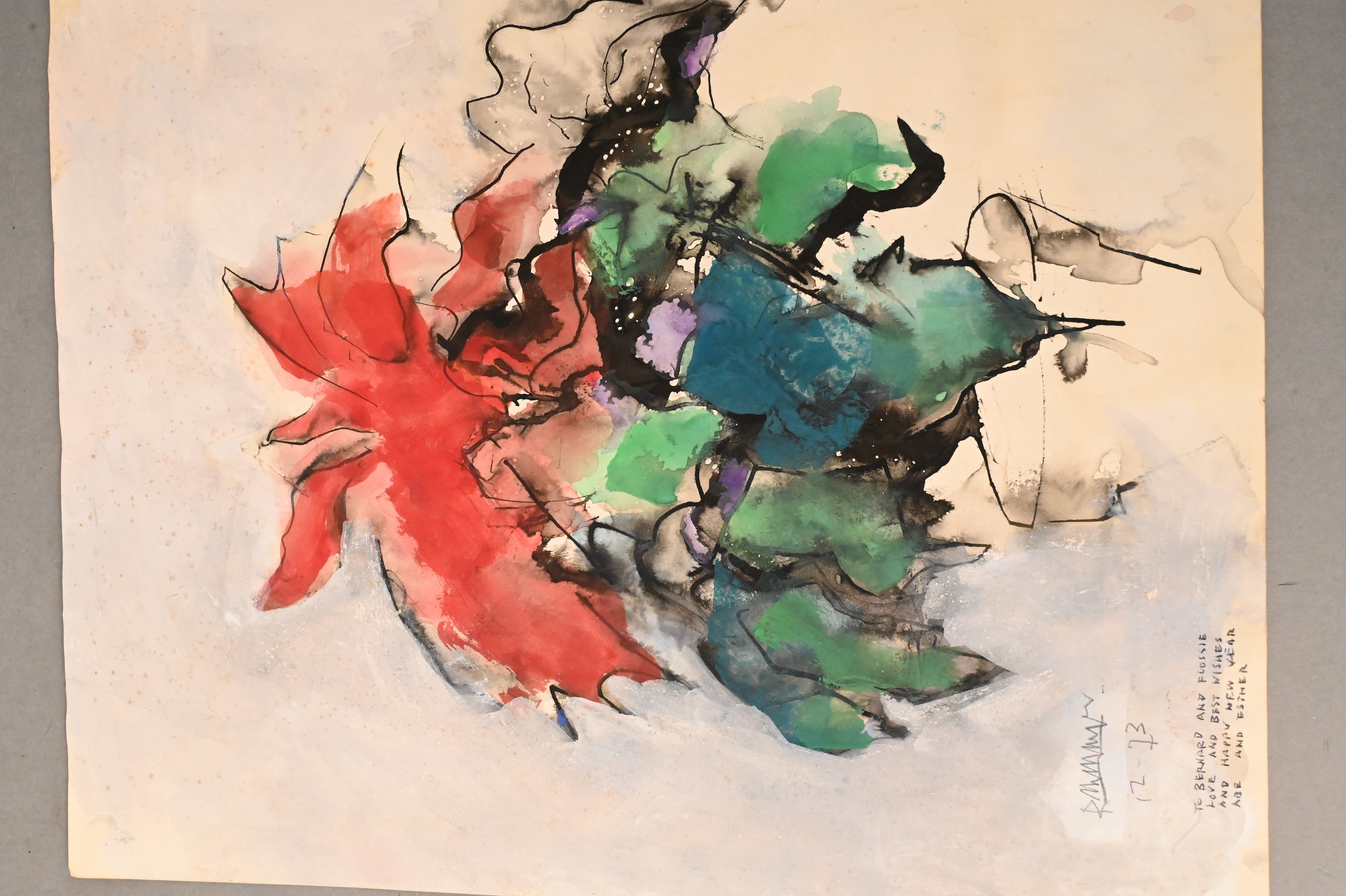 Signed and dated lower left Rattner ’73, inscribed “To Flossie & Bernard Love from Esther and Abe Best Wishes for happy holidays and New Year”