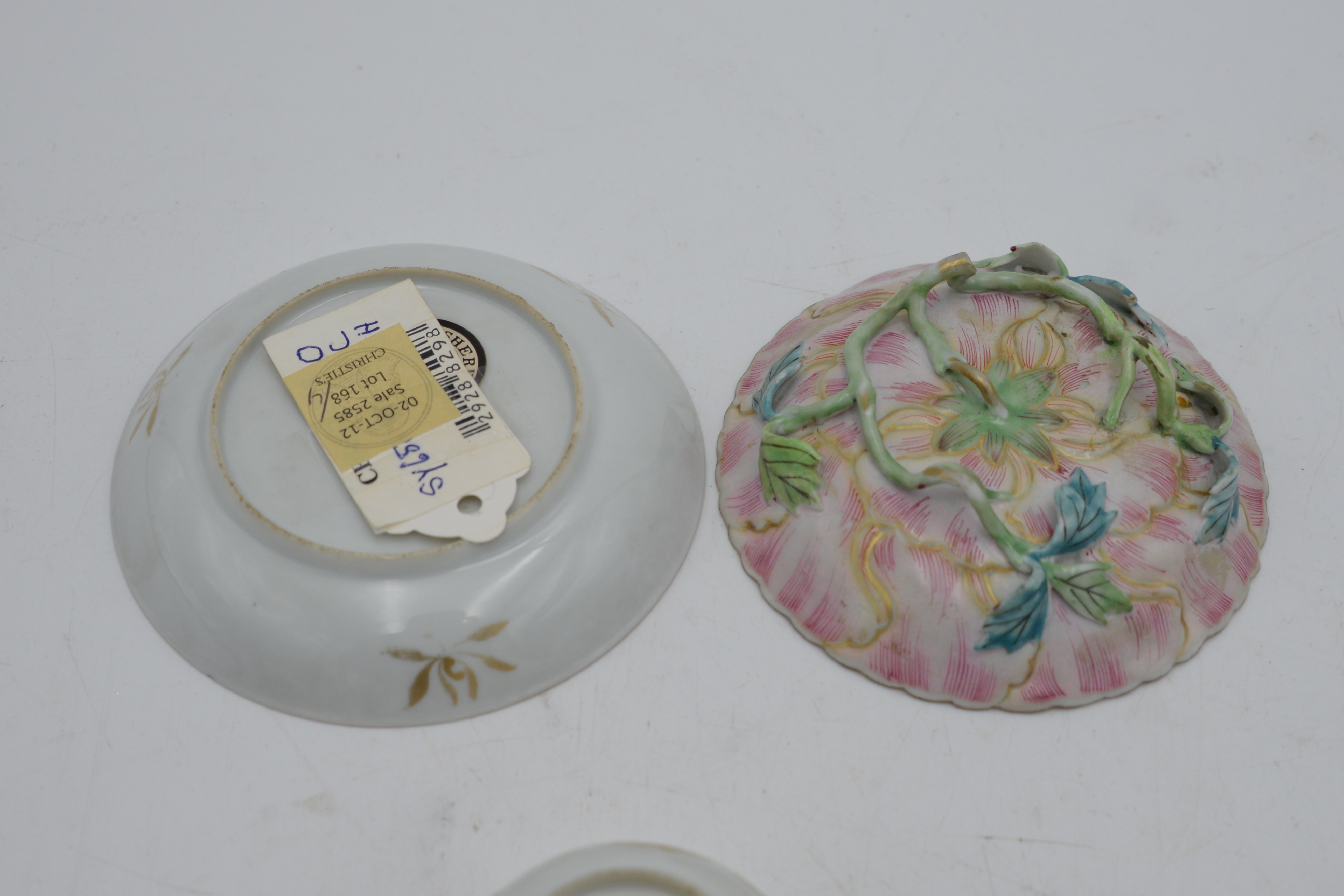 Two Chinese Porcelain Tea Cups and Saucers, probably 18th century, teacup height 1 1/2 inches, saucer diameter 4 1/3 inches, Provenance: Christie’s October 2, 2012 Sale 2585 lot 168