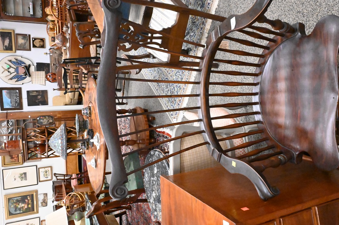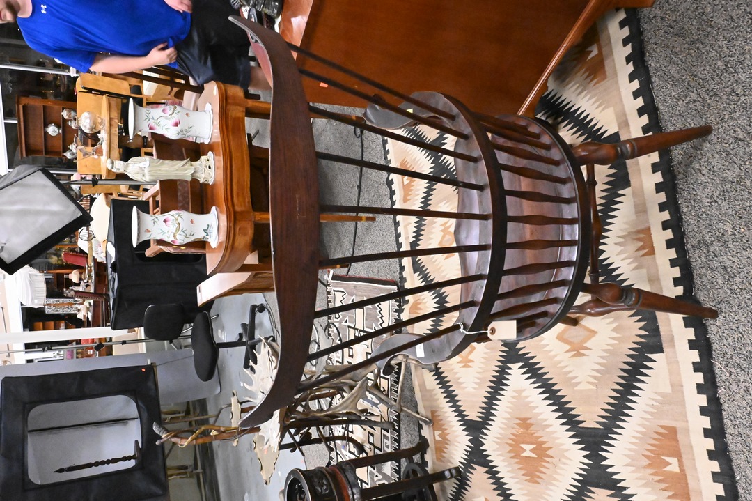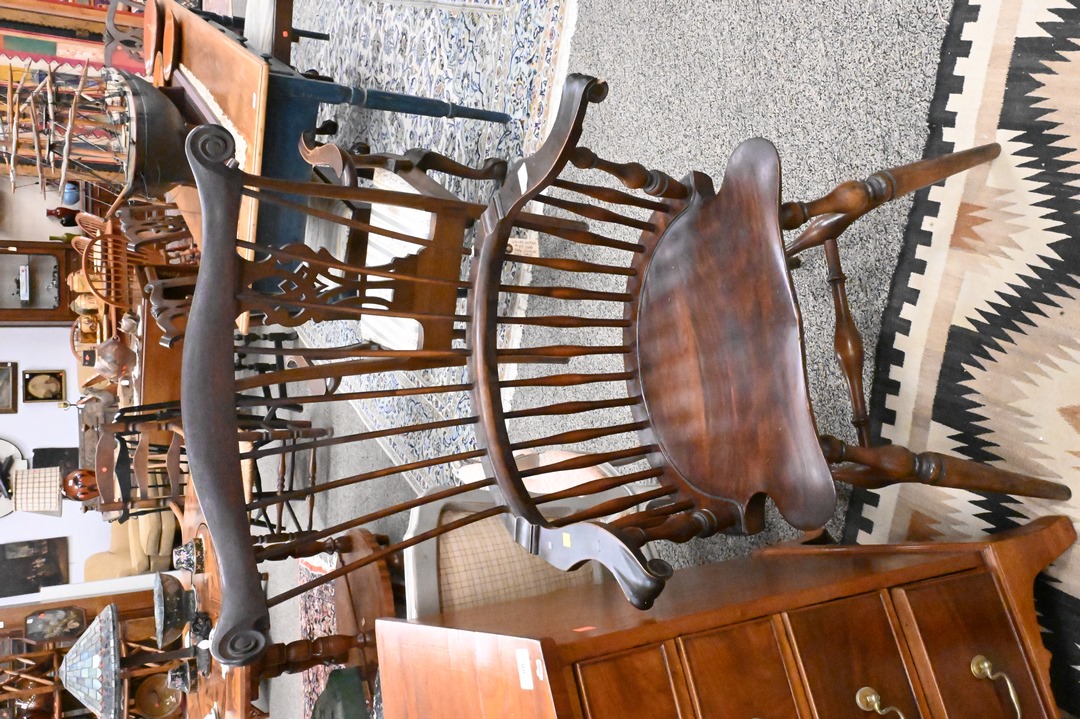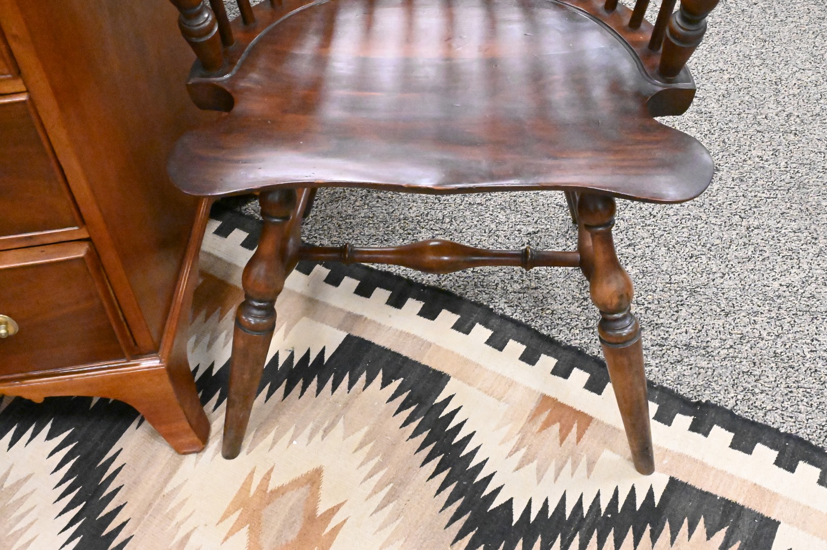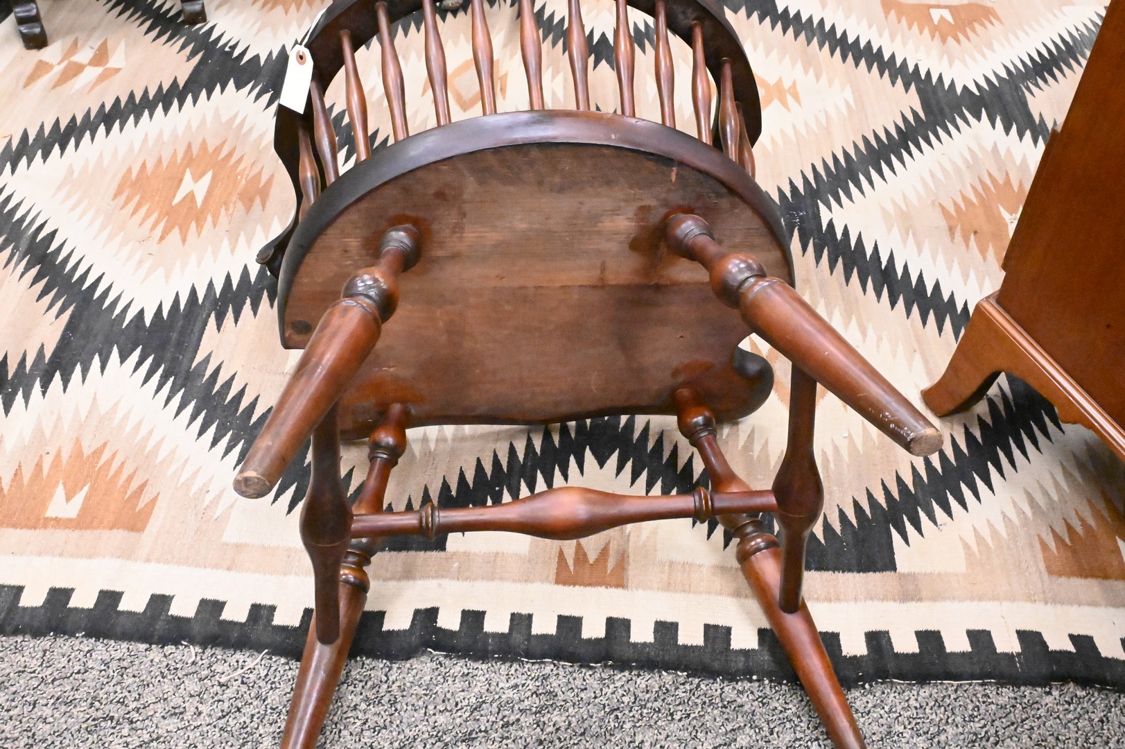 Windsor Style Fan Back Armchair, attributed to Wallace Nutting, stamped #415, height 44 1/2 inches, seat height 18 inches.
