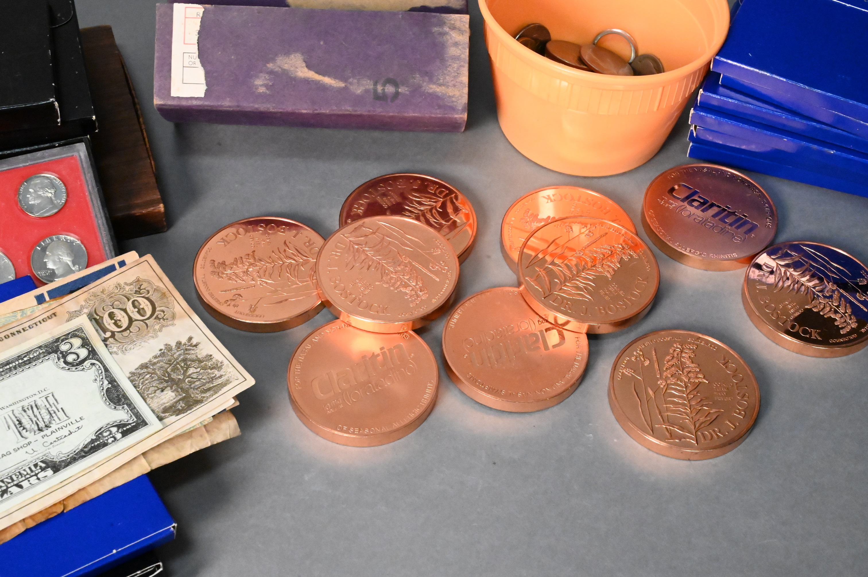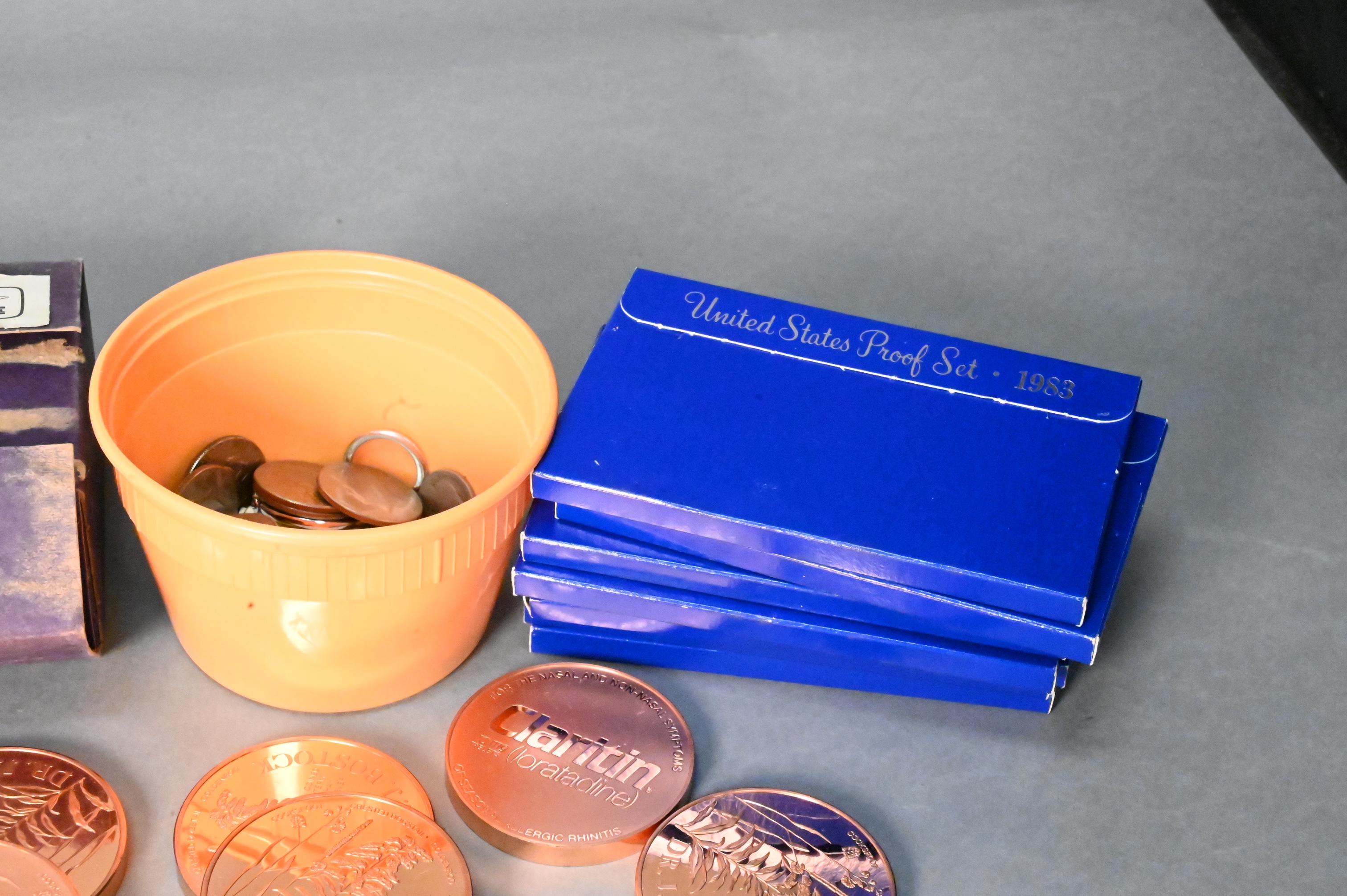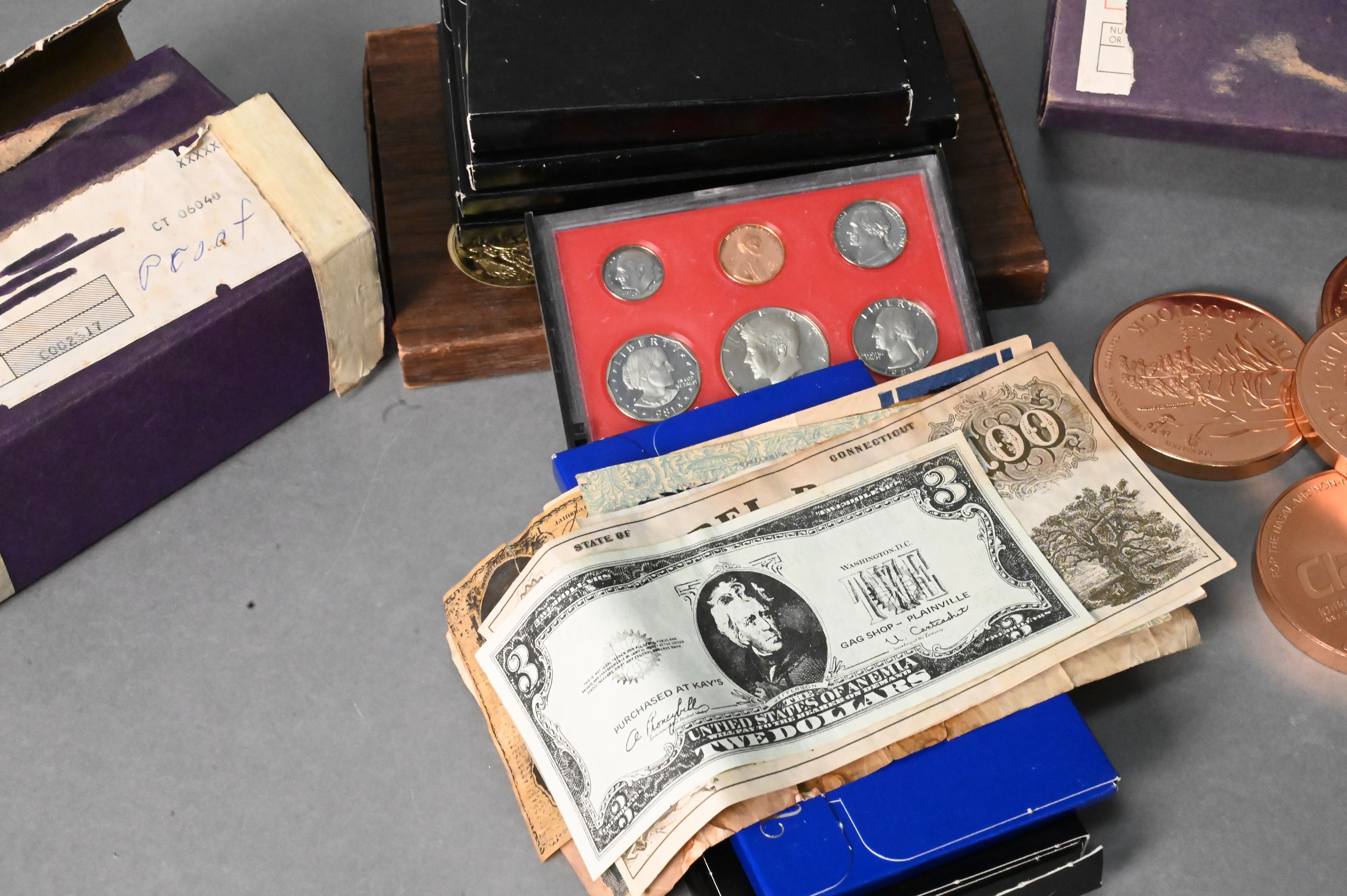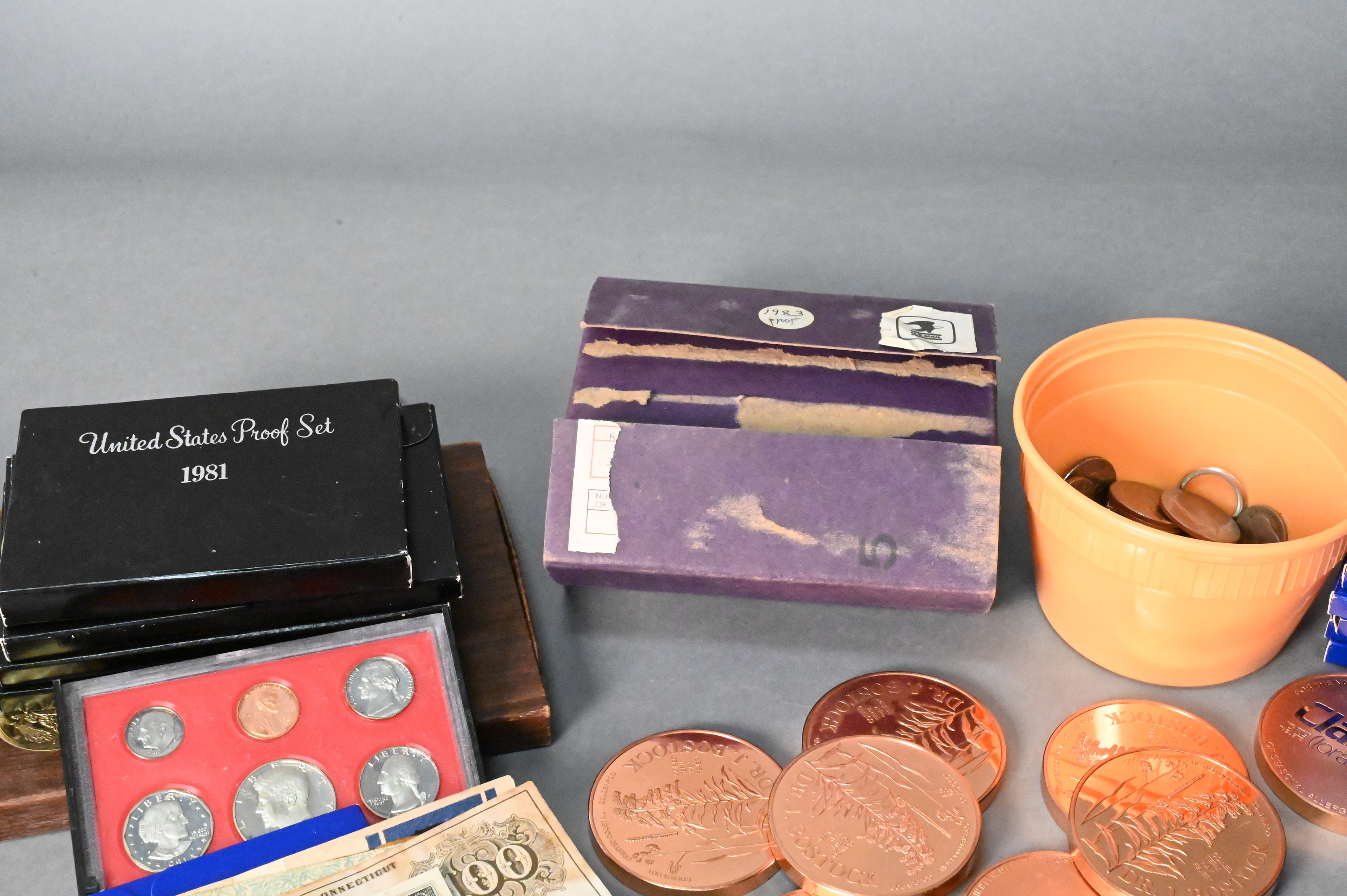 13 US Proof Sets, to include 1974 Ike proof dollars, 11 silver dollars, along with 57 t.oz. of copper.