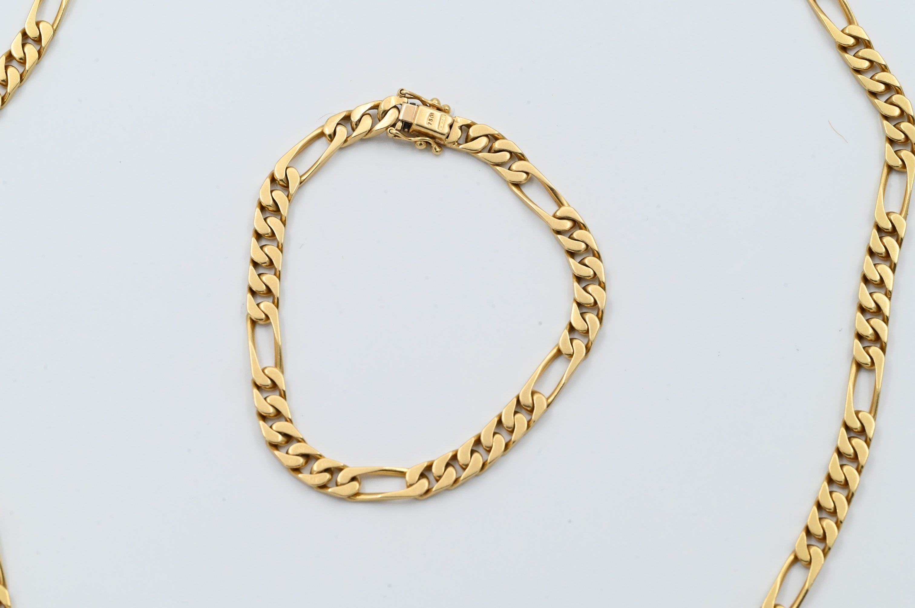 18K Yellow Gold Chain Link Necklace and Bracelet