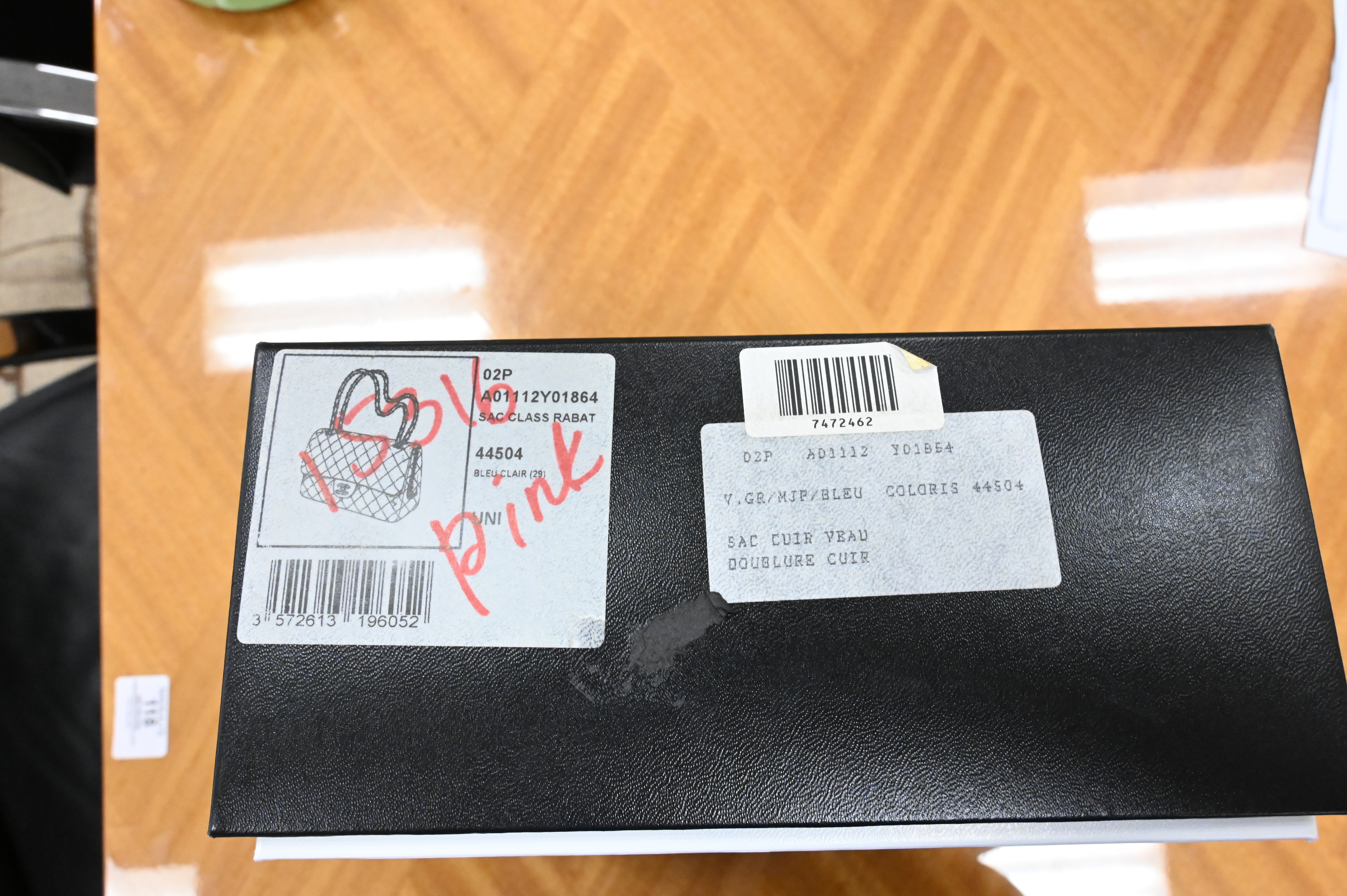 having chain strap laced with leather and classic double “C” logo, turn lock clasp, serial #7672751