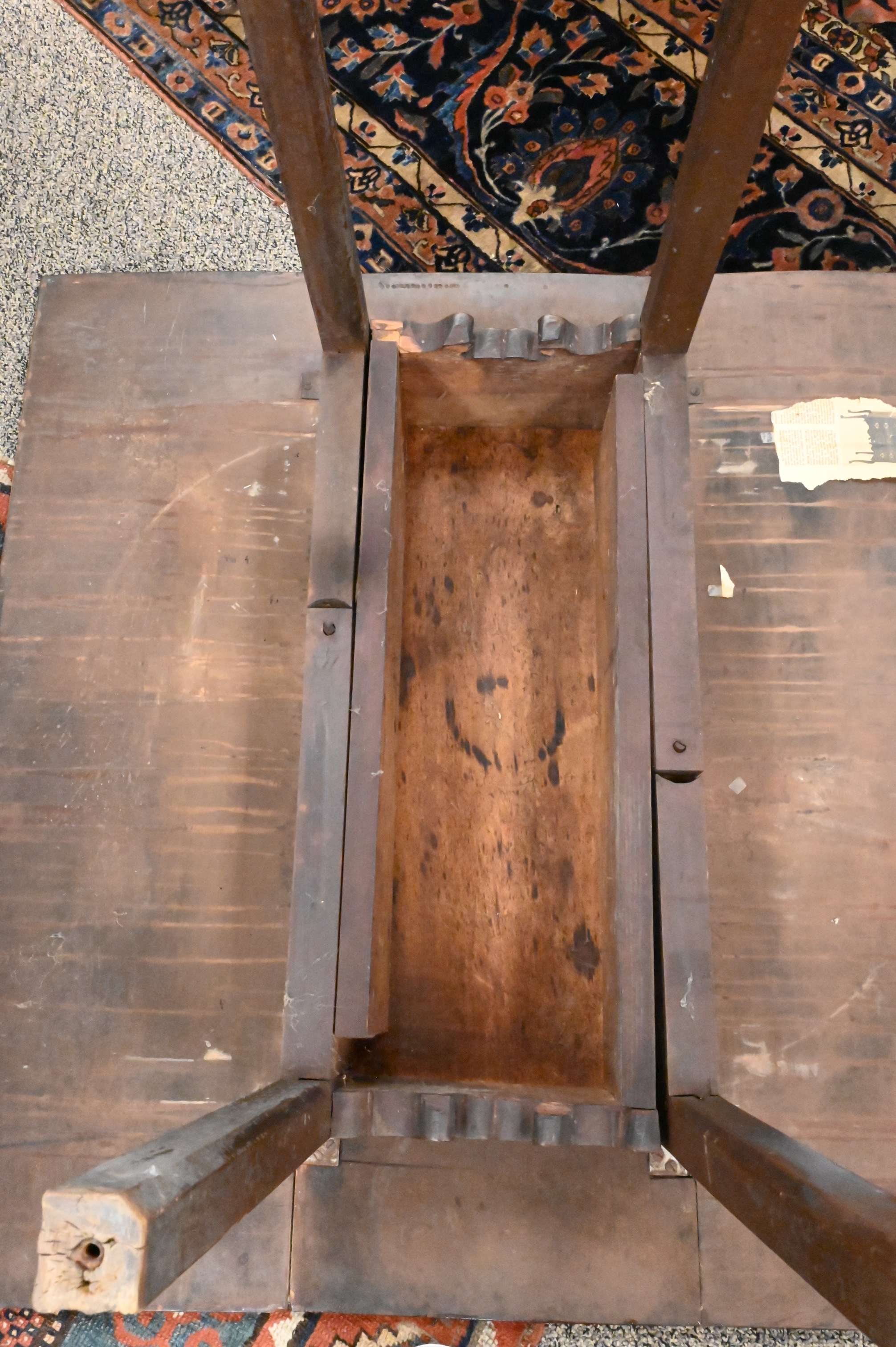 Base with old red/brown paint with scrubbed top, probably Salem, Massachusetts C.1760