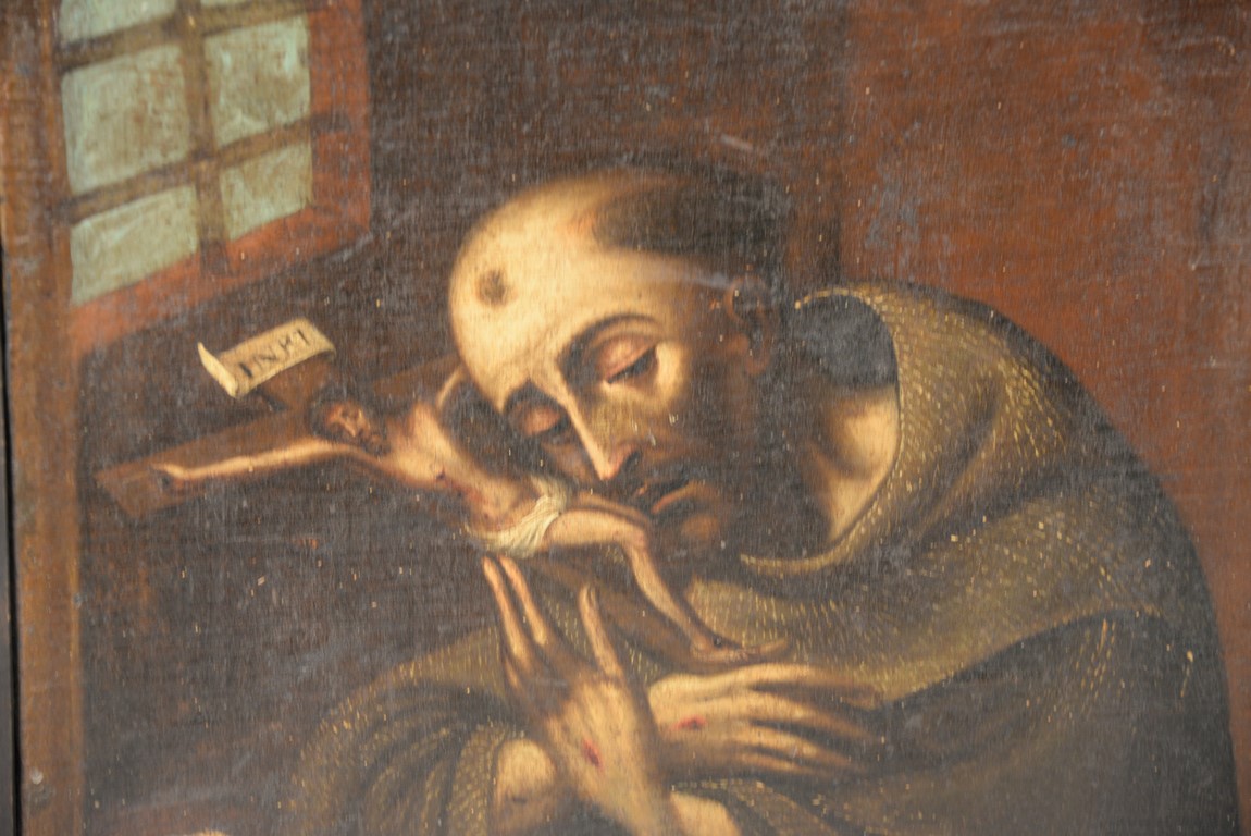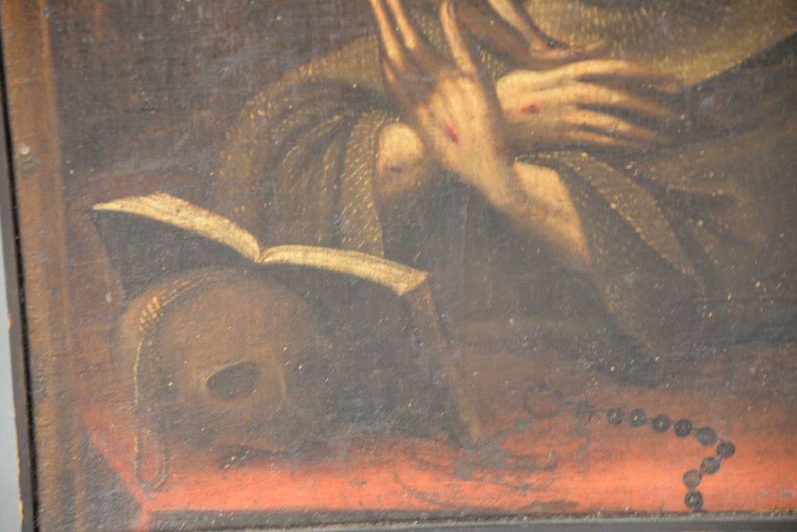Lot 88: CIRCLE OF MELCHOR PEREZ DE HOLGUIN 1665-1724 Old Master Religious Worship the Cross oil on canvas unsigned relined and restretched 18 1/2 x 16