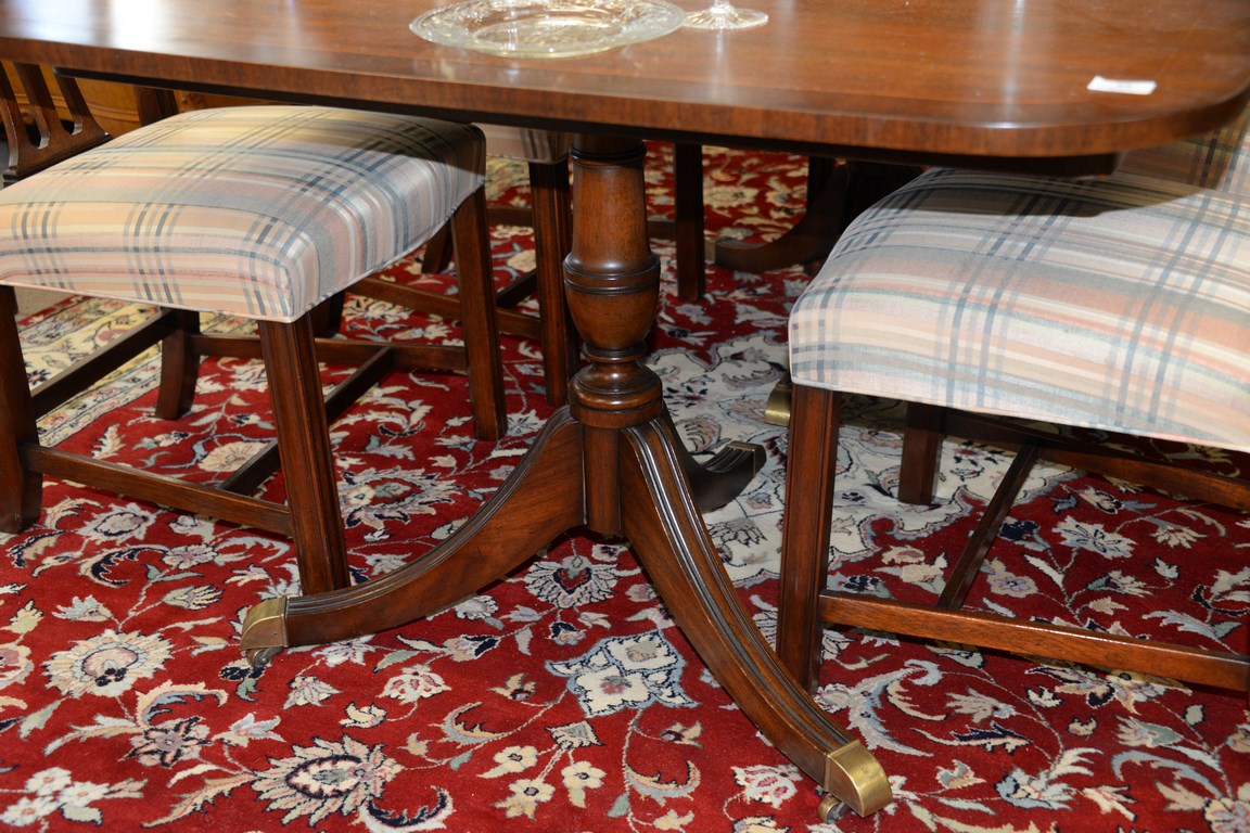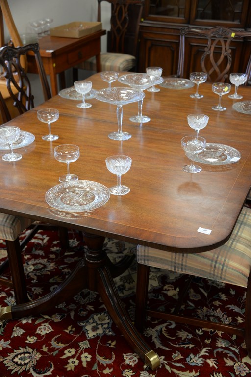 Lot 88: Custom mahogany Kindel dining table with four leaves and inlaid top