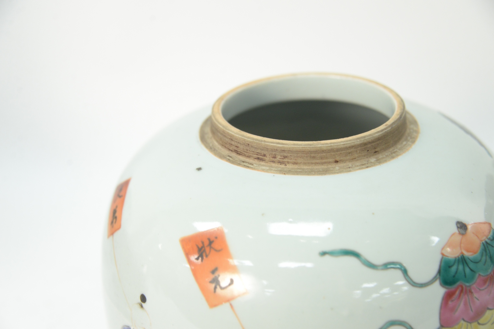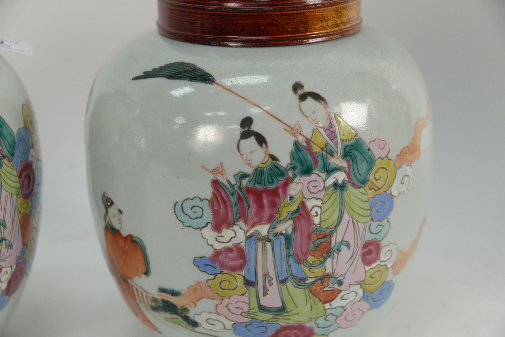 Lot 88: Pair of Covered Chinese Famille Rose Ginger jars, with parading boys, height 9 inches. Provenance: Collection from Mr. and Mrs. Fowler, West Hartford, Connecticut.