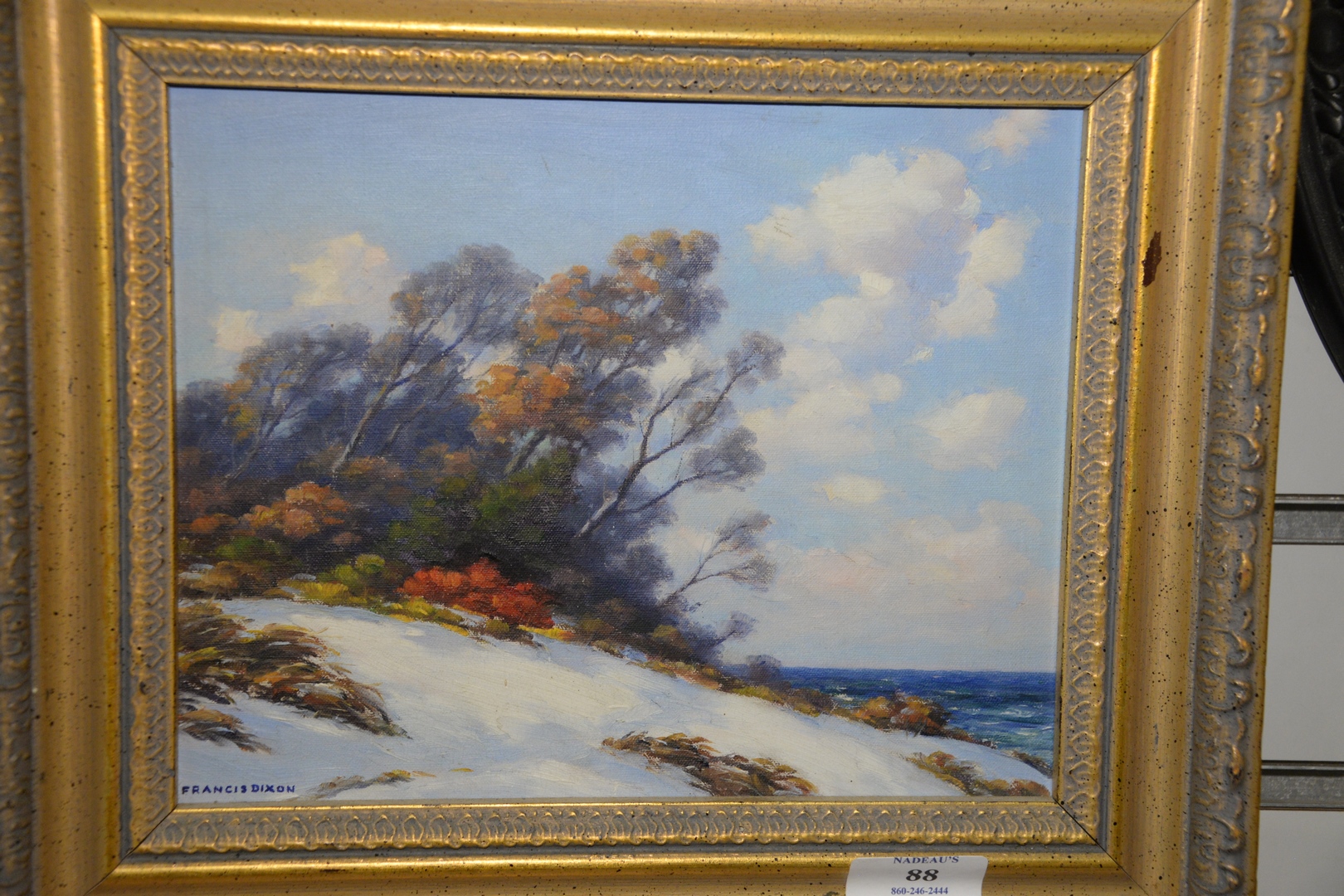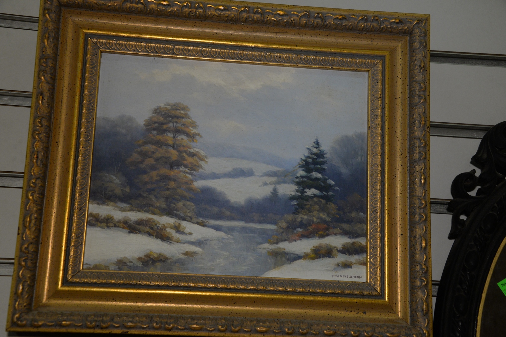 Lot 88: Pair of Francis Dixon American, 1897 – 1967 winter landscapes oil on canvasboard oil on board each signed Francis Dixon and one t…