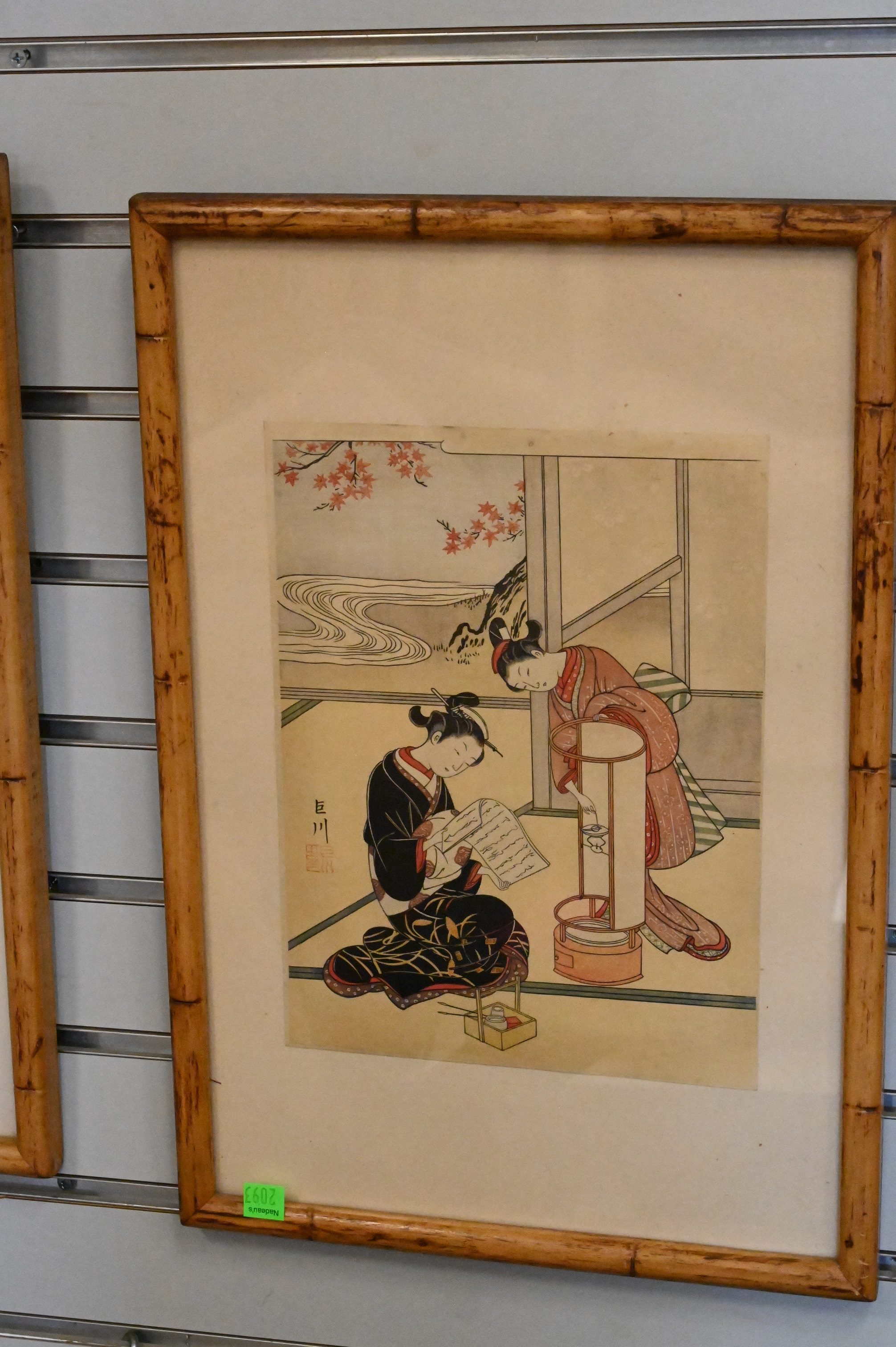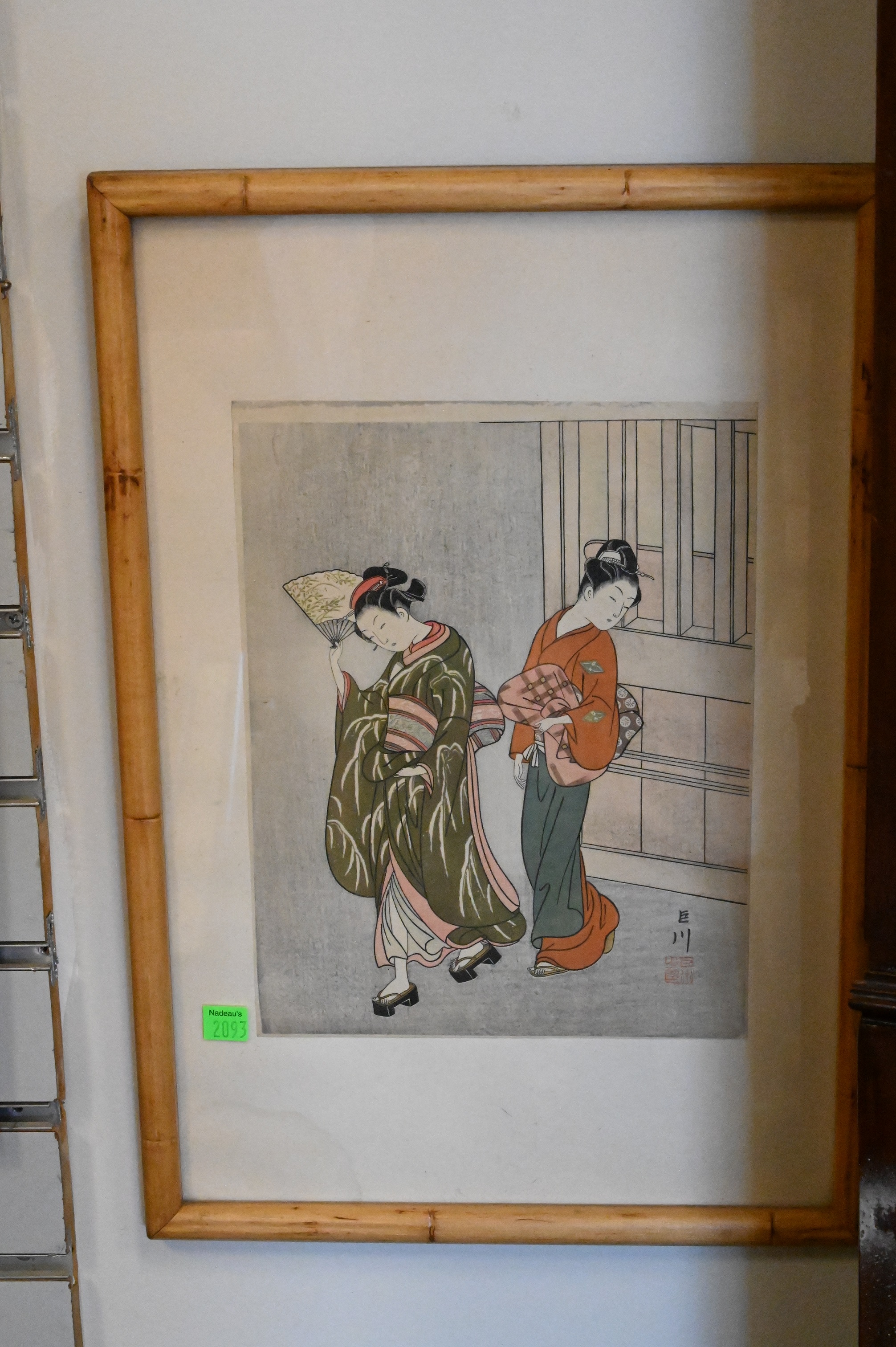 Set of Five 19th Century Japanese Woodblocks After Suzuki Harunobu (1724-1770) featuring Geishas/ Female Courtesans each having red signature stamp 11 1/4″ x 8 3/4″