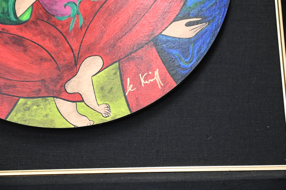 Lot 88: Three Piece Linda Le Kinff (French/Italian, b. 1949), to include “Cendrillan”, serigraph with hand coloring on paper mounted on circular board, signed lower right, numbered “56/125” on backing board; along with two seriolithograph “Annabella”, both unmounted and unframed, diameter 15 5/8 inches.