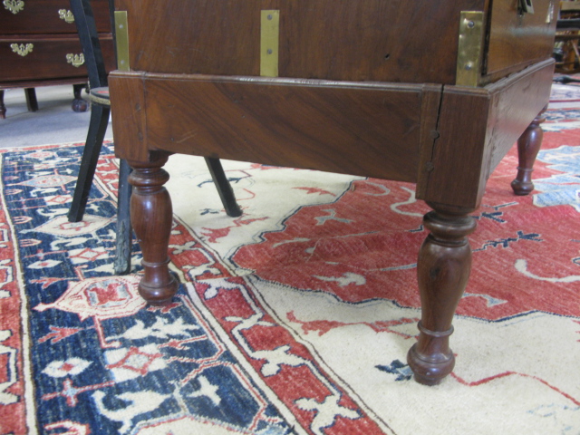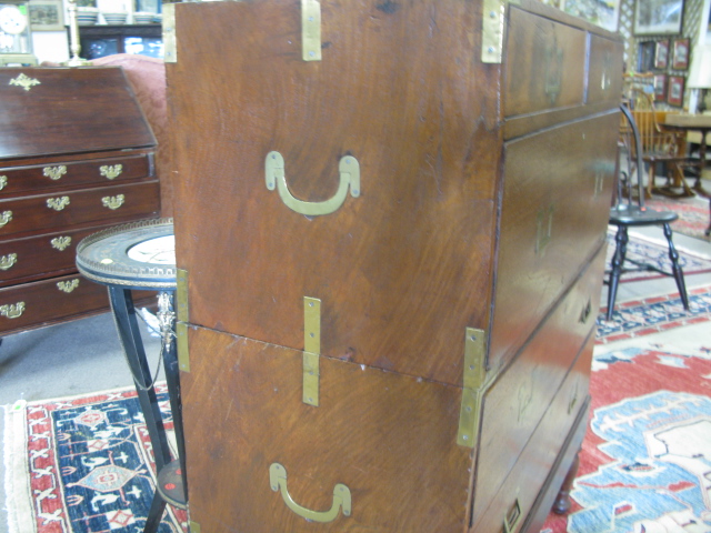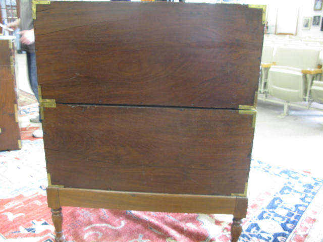 Two section campaign chest two drawers over three drawers on base on turned legs, early 19th century