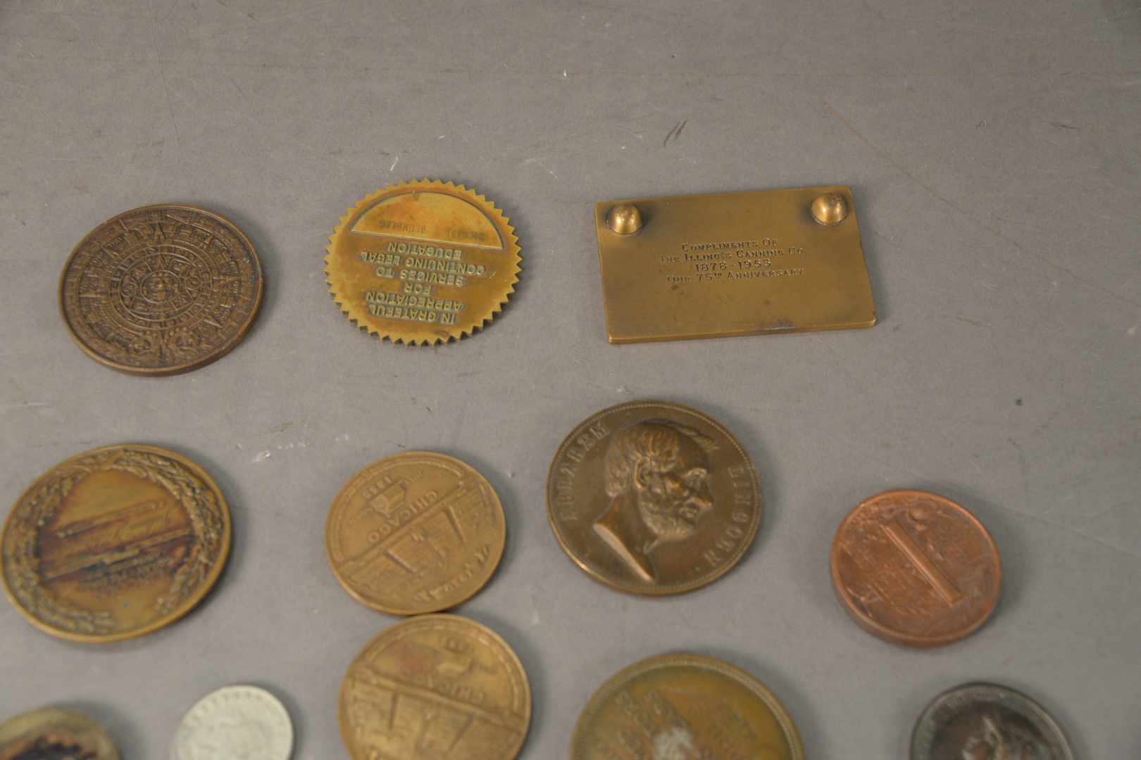 Group of Sixteen Plaques and Medals, to include Lincoln, Crane Company, Mexico, etc., 1 1/2 – 3 inches.