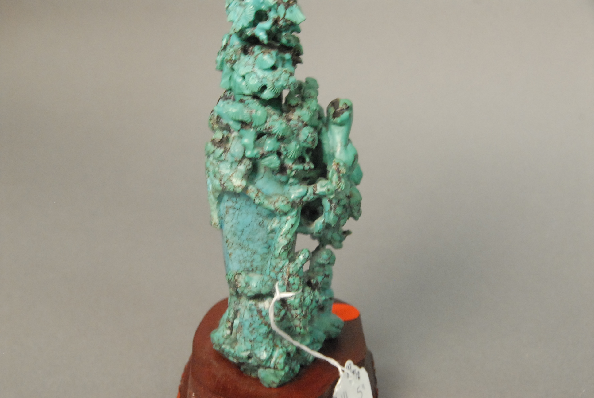 Carved turquois covered vase having large scrolling pine with carved squirrels, ht. 5, wd. 5 1/4.