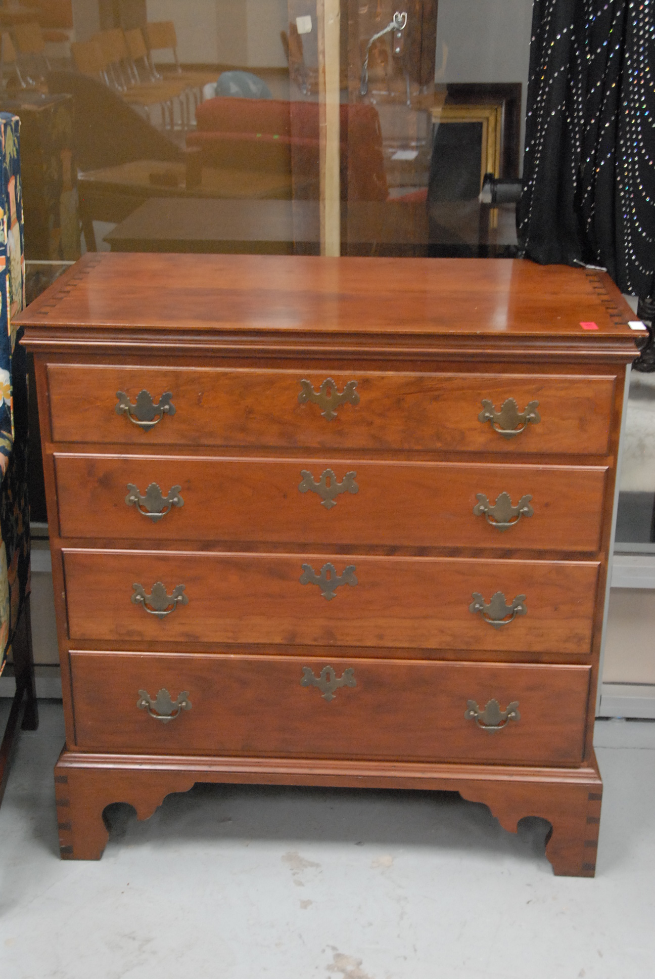 Lot 89: D.R. Dimes cherry four drawer Chippendale style chest, signed on back Dimes, ht. 36in, wd. 34 1/2in., dp. 19in.