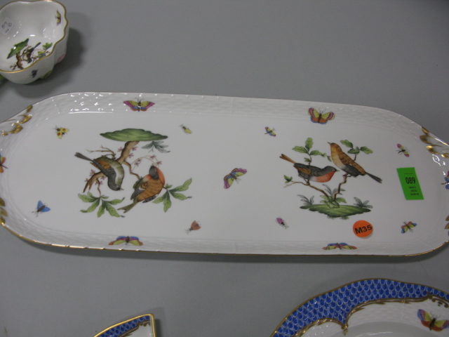 Eight piece Herend lot including long tray, creamer, two dishes, caster, bowl and two small pieces.