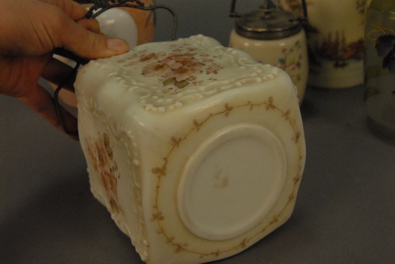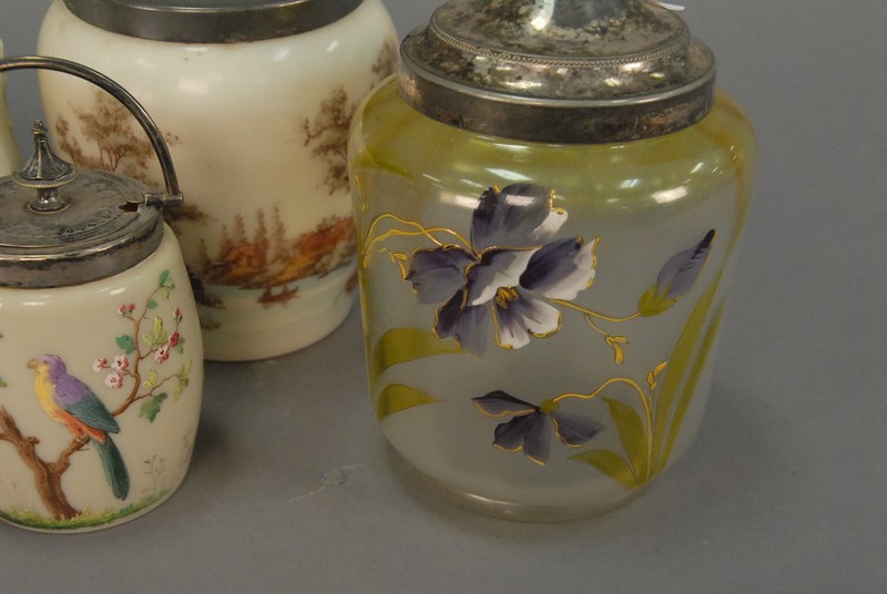 Four Victorian cracker jars with covers. ht. 5in. to 8in.