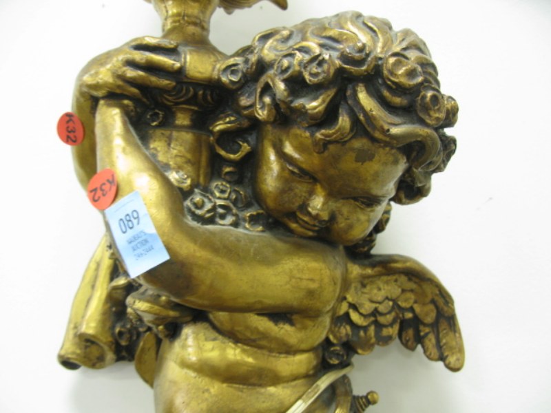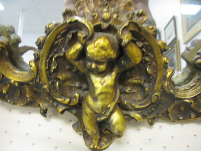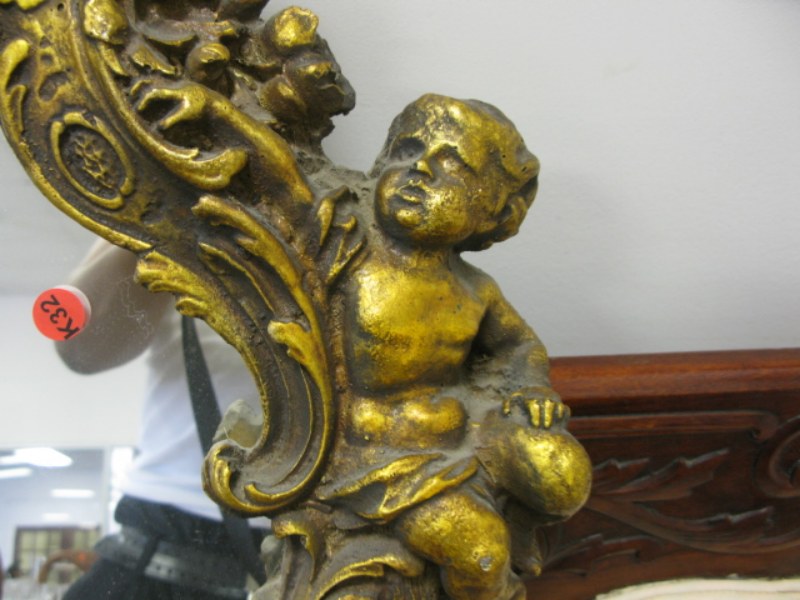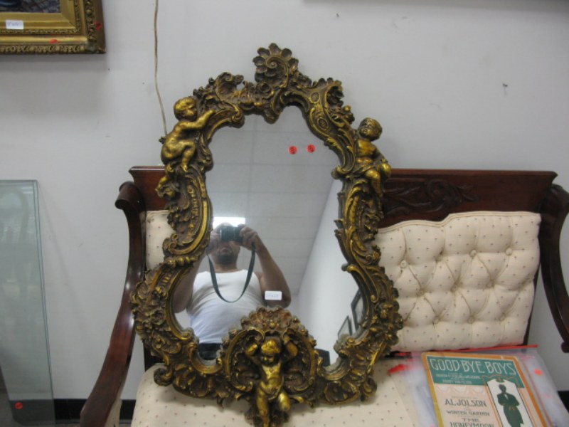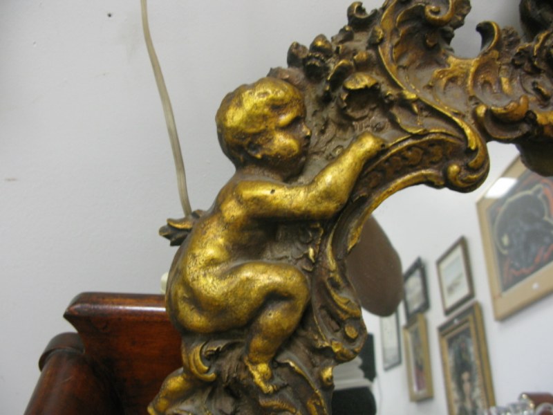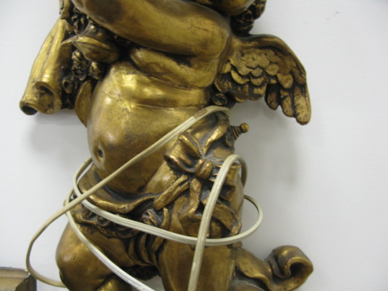 Gold cherub lamp and gold cherub mirror.
