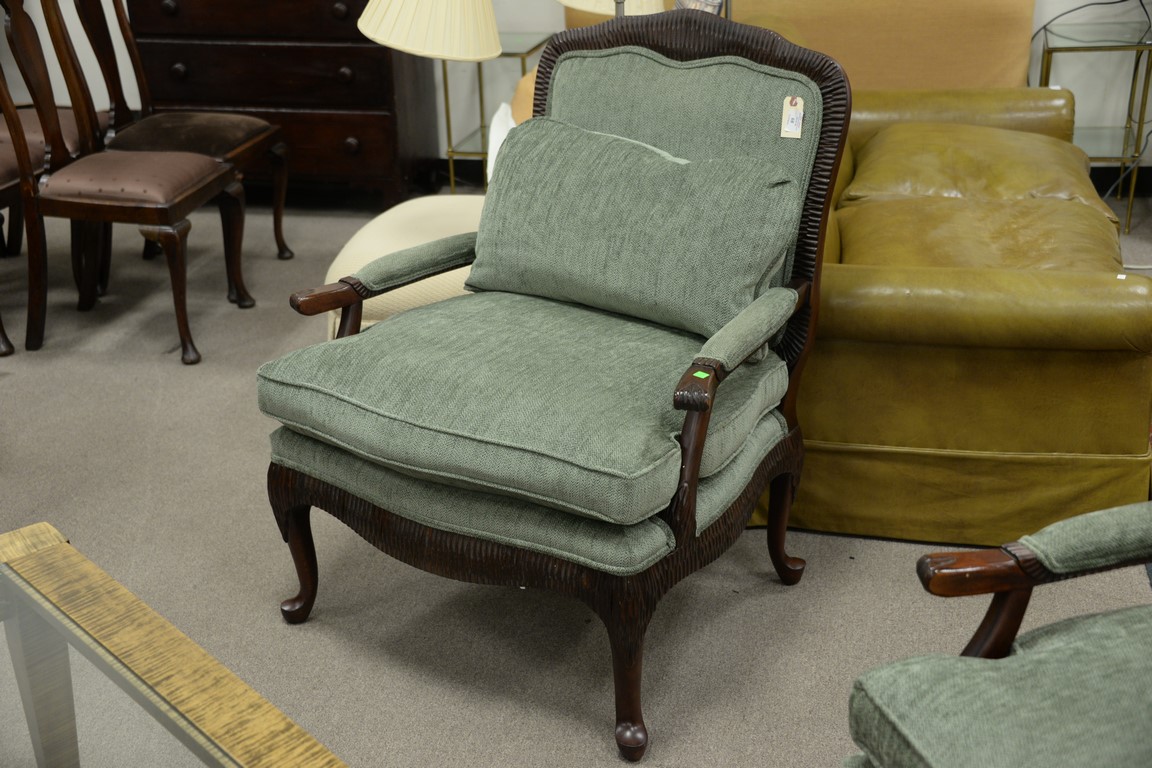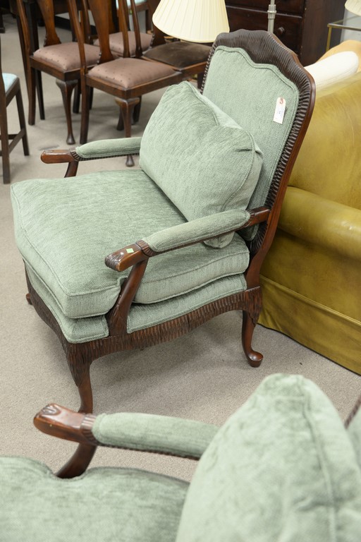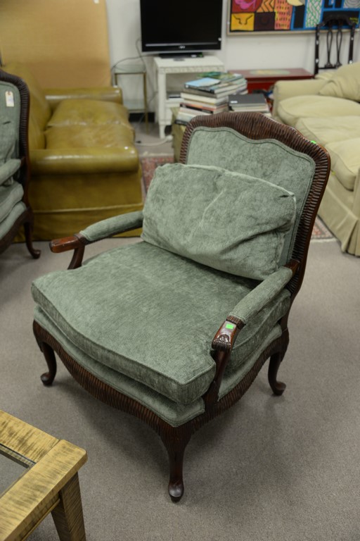 Lexington pair of Louis XV style upholstered armchairs.