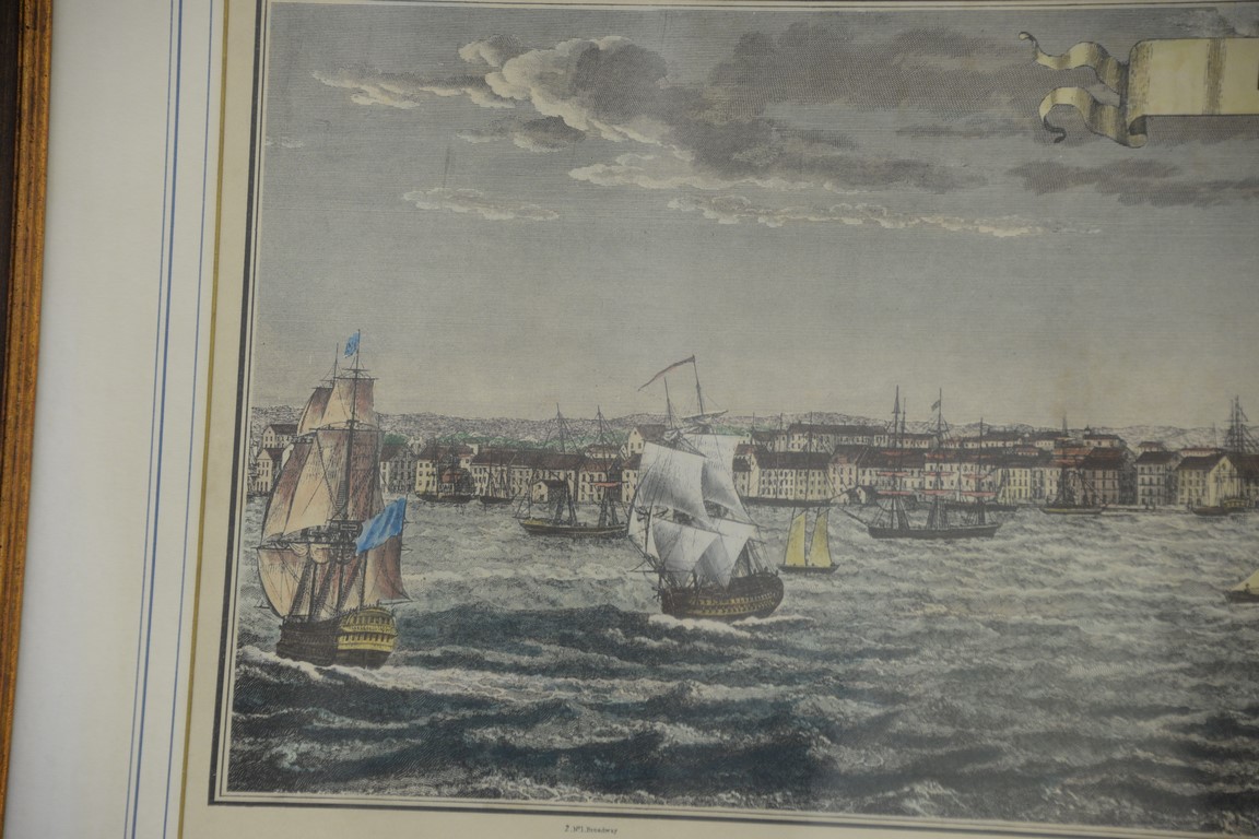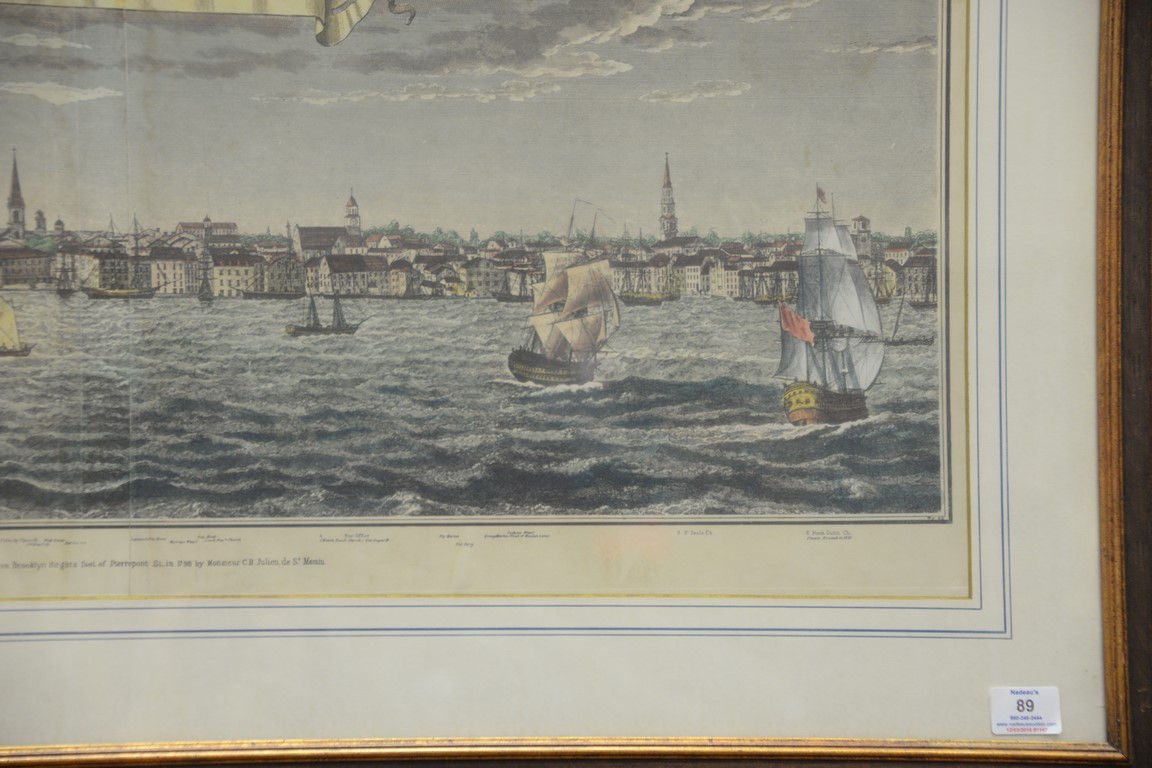 Lot 89: New York colored print, A View of the City of New York from Brooklyn Heights Foot of Pierrepont St. in 1789 by Monsieur C.B. Julien…