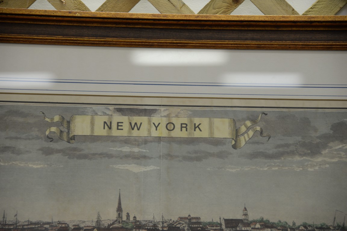 New York colored print, A View of the City of New York from Brooklyn Heights Foot of Pierrepont St. in 1789 by Monsieur C.B. Julien de St. Memin, sight size 15 x 38. Provenance: Property from Credit Suisse’s Americana Collection
