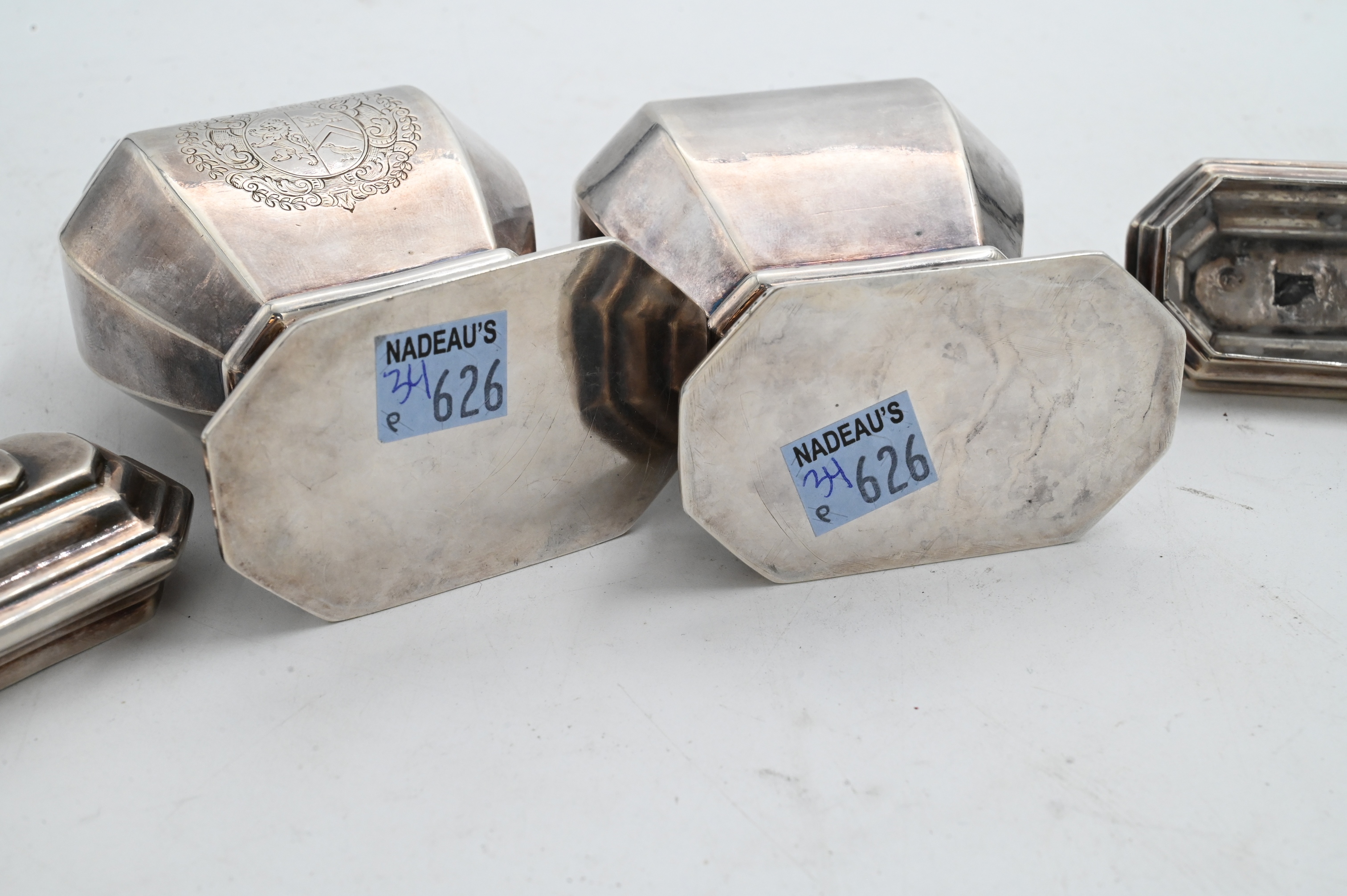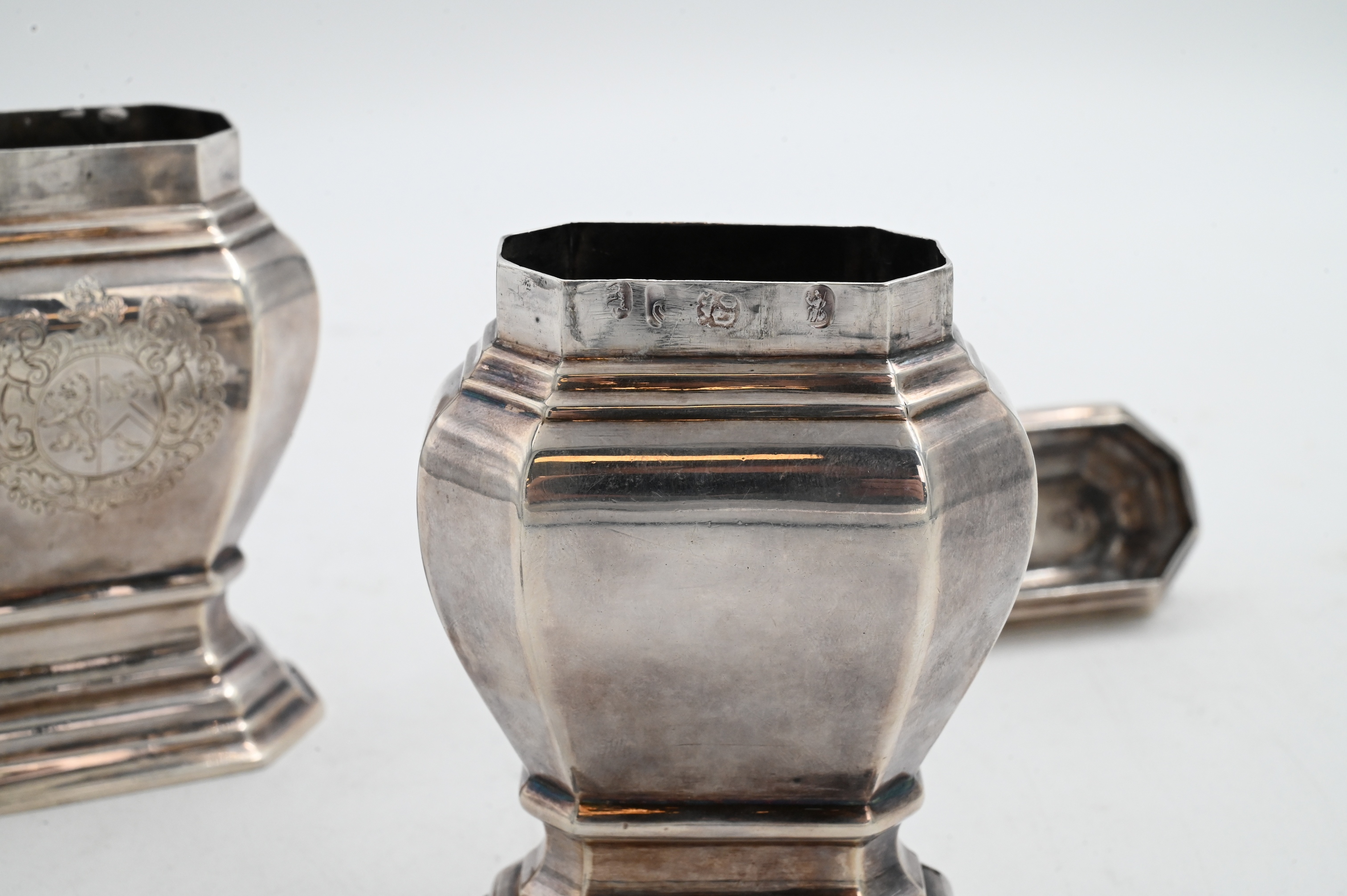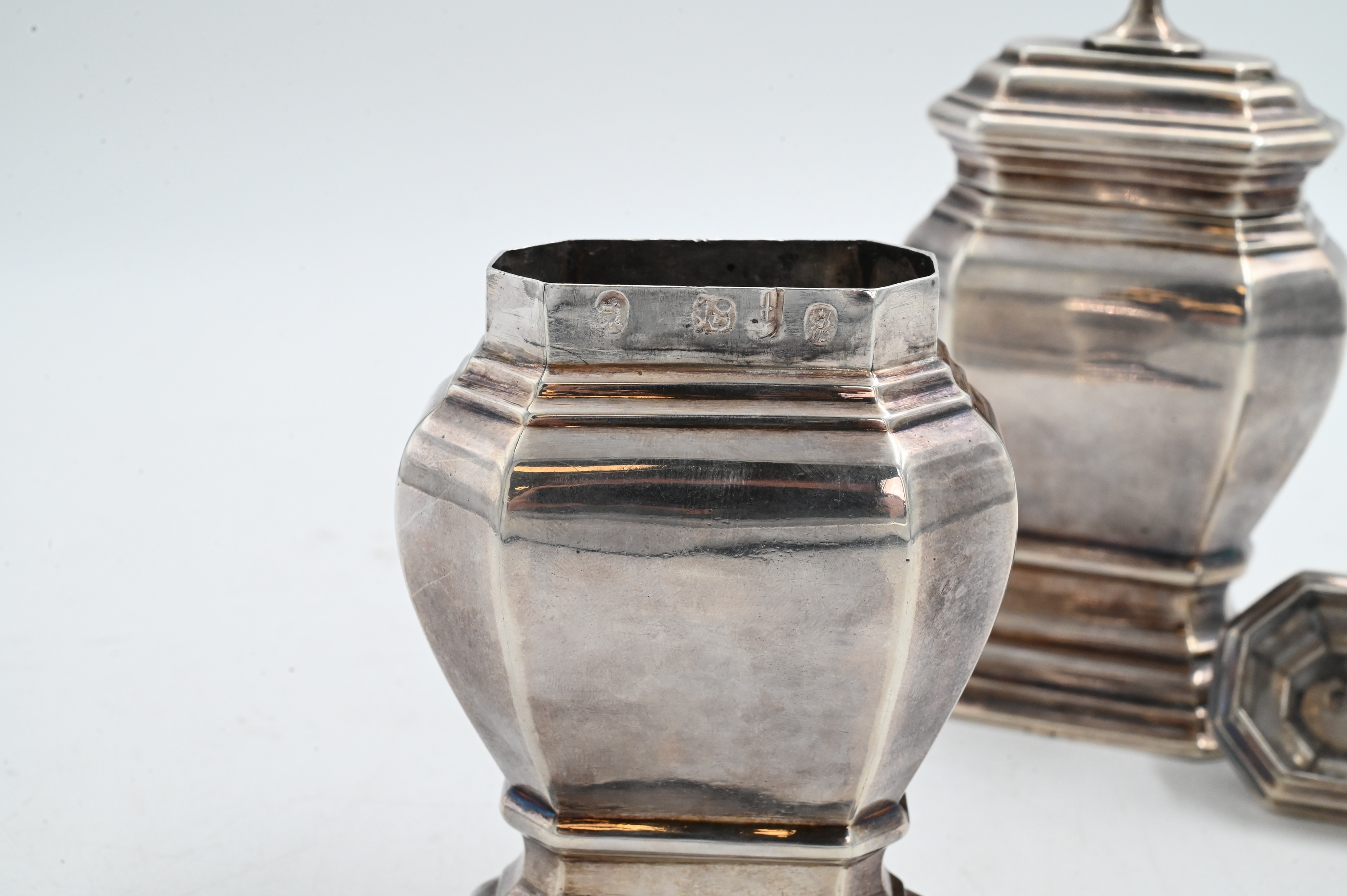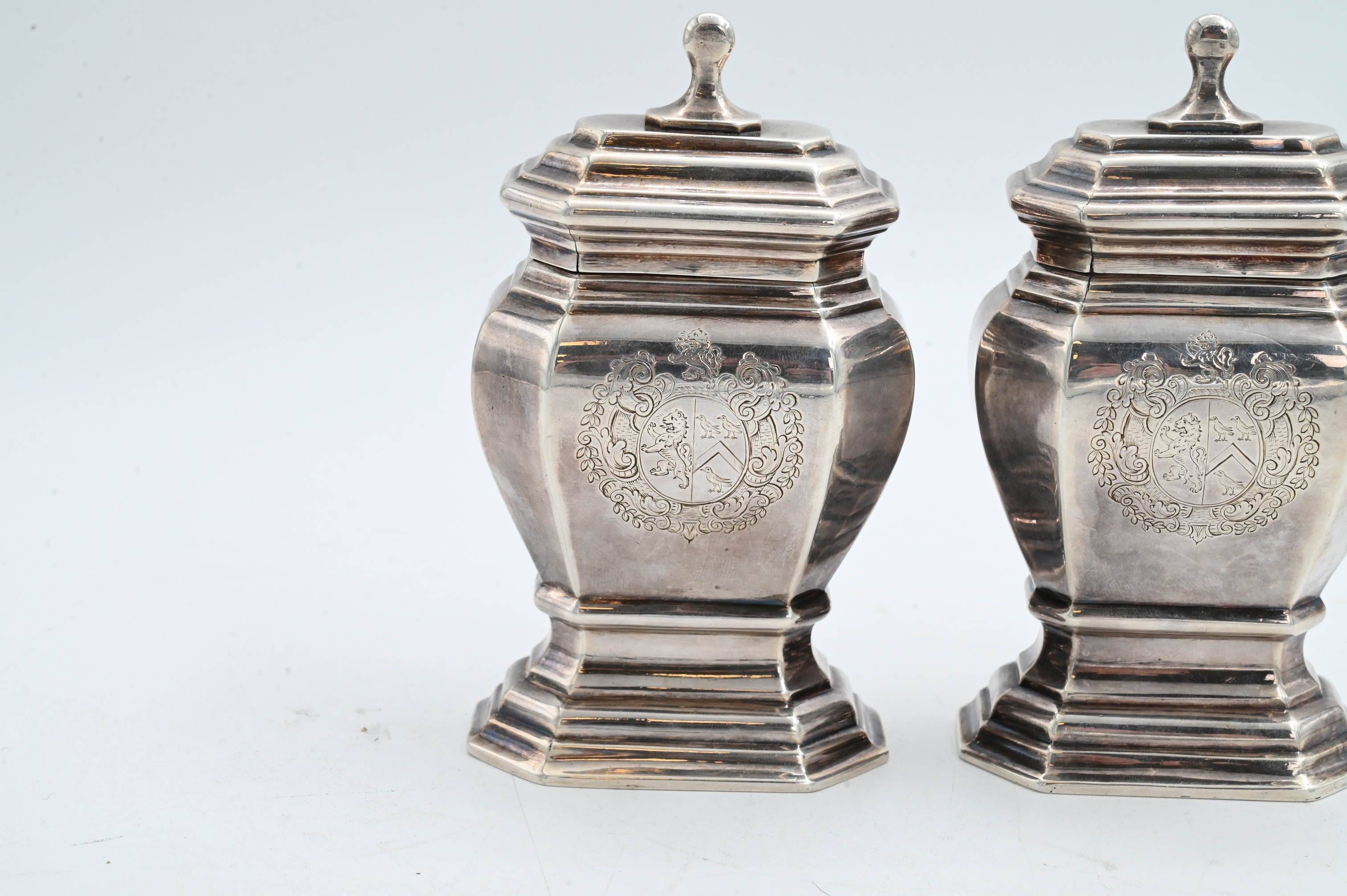 Lot 89: Pair of Queen Anne Period Silver Tea Caddies by Matthew Cooper