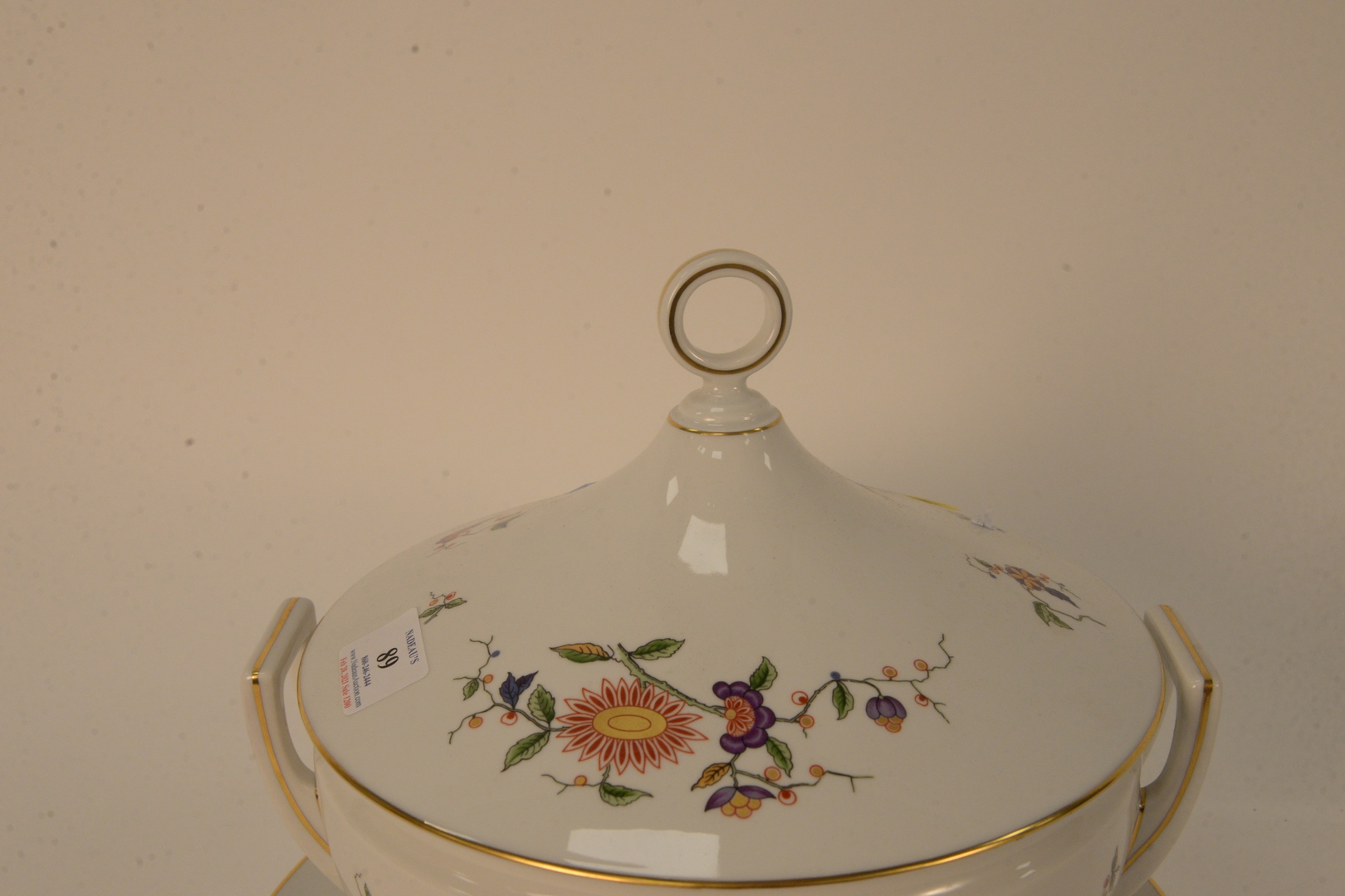 Lot 89: Richard Ginori Italian Porcelain Covered Tureen, with underplate, having painted flowers with gilt gold center, marked Manifattura Di Docia, Florence, height 9 1/2 inches. Provenance: The Estate of Alina Roisen, Park Avenue, New York.