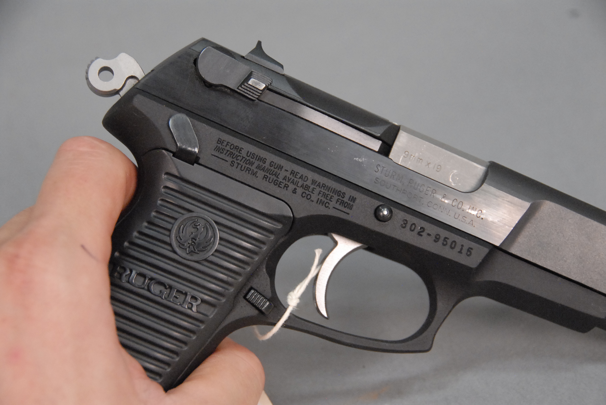 Lot 89: Ruger P85MK11, 9mm pistol, matte black with synthetic grips, 4 1/2 barrel, s/n 302-95016 380.