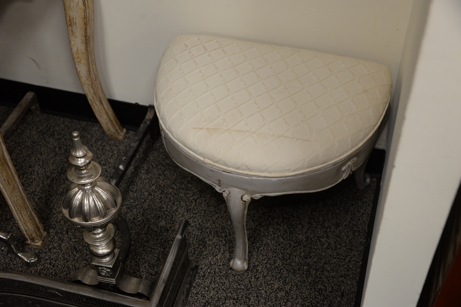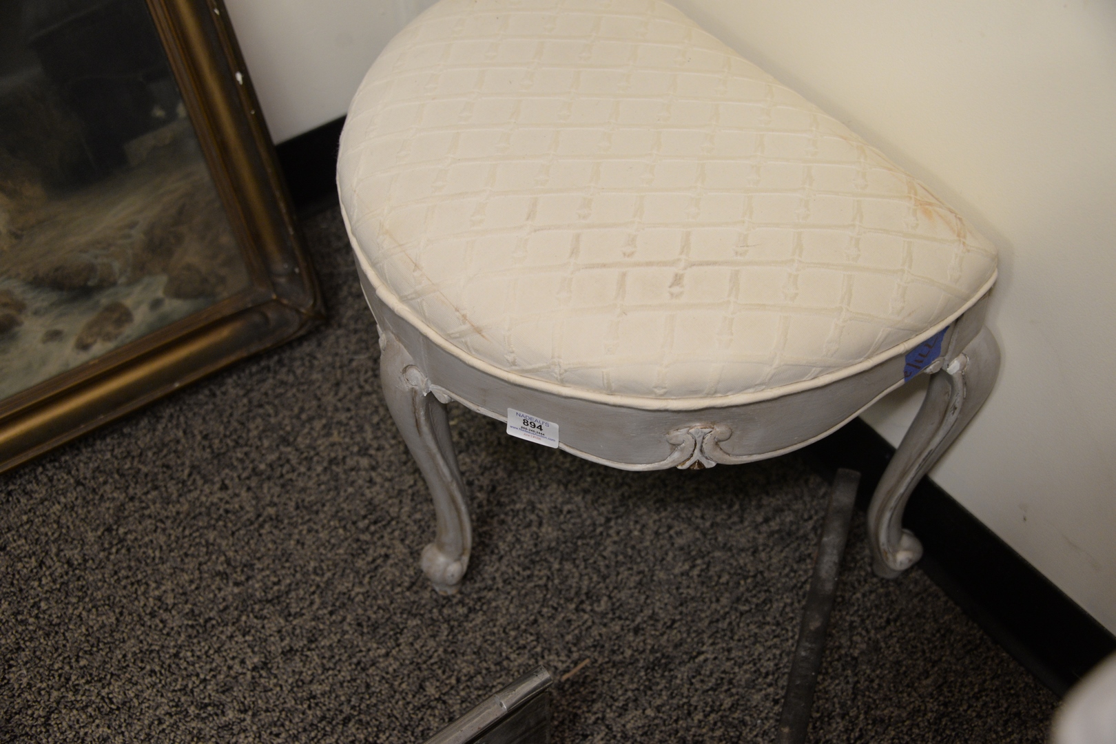 Pair of Louis XV Style Stools, having upholstery top, height 17 inches, width 19 inches.