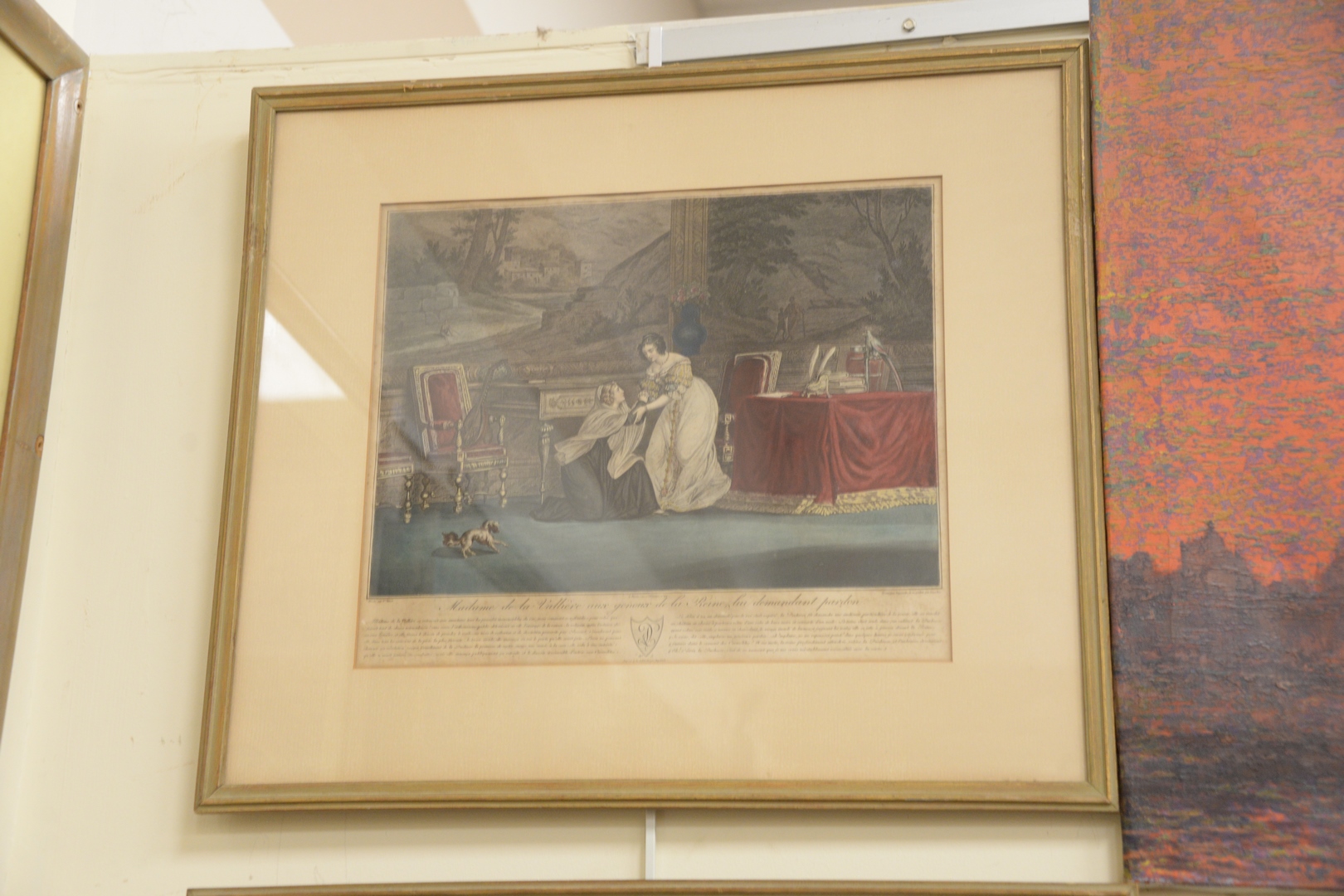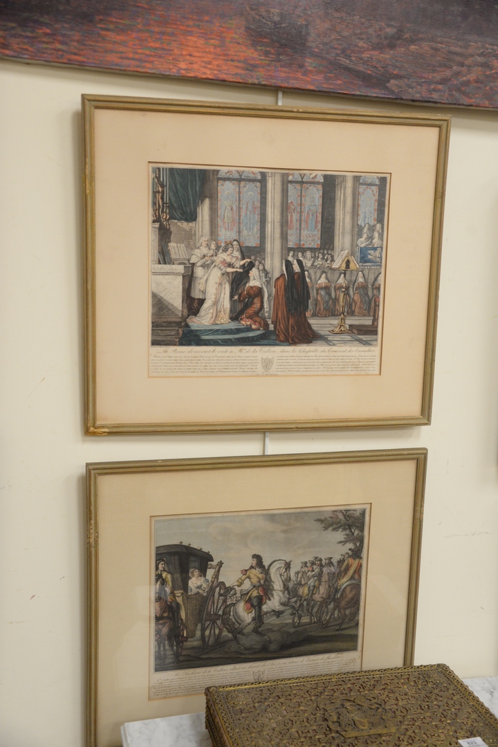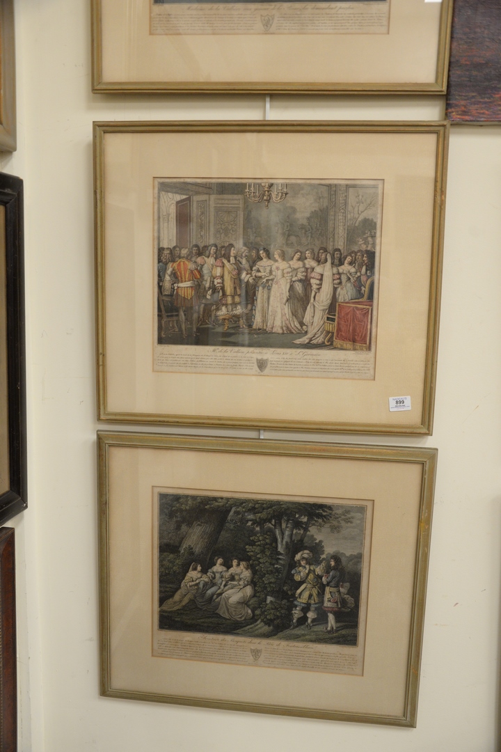 Lot 899: Five Piece Group of 19th Century French Hand Colored Engravings, showing French court, each inscribed in plate in French, throughout…