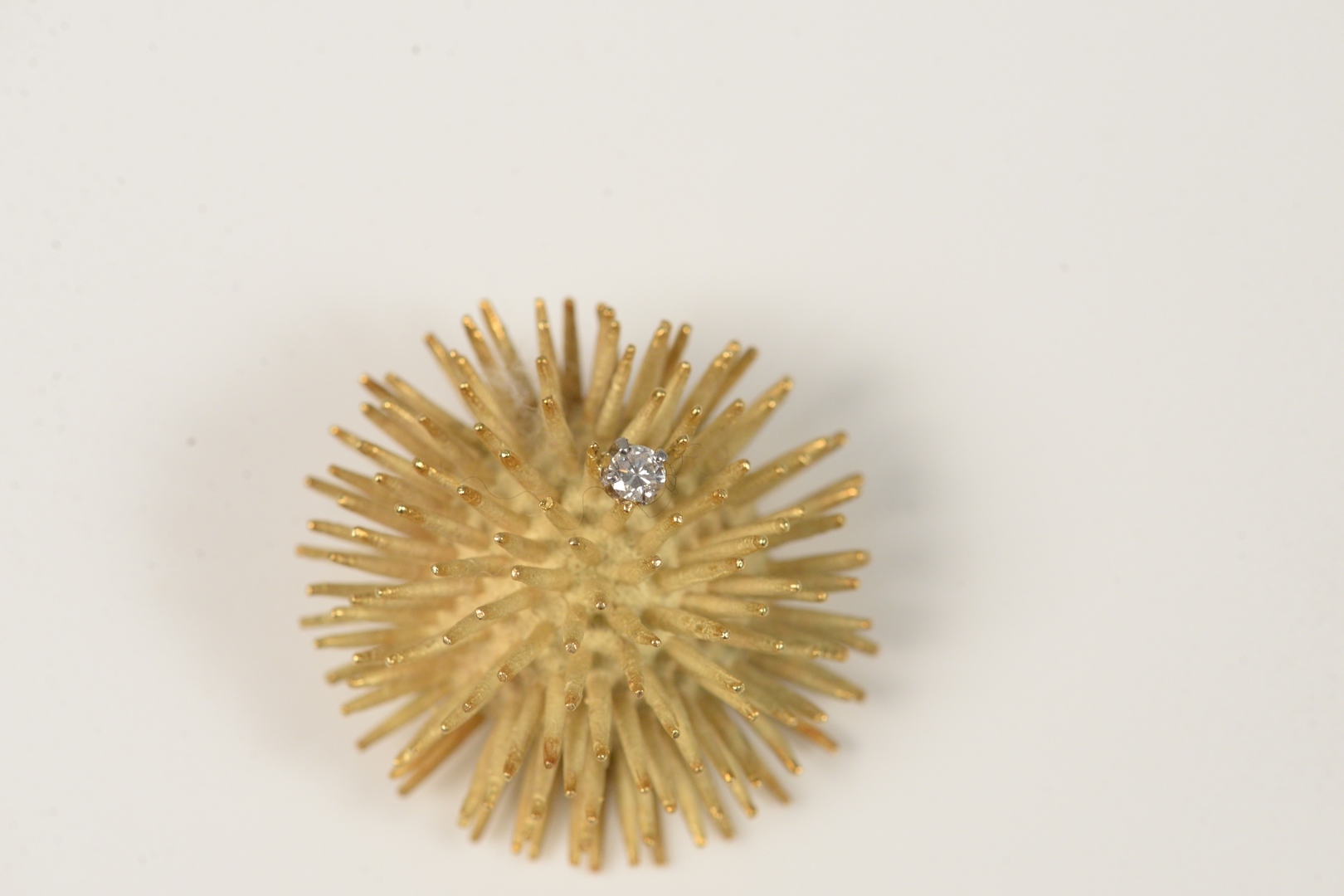 18 Karat Gold Sea Urchin Brooch set with diamond diameter 1 3/8 inches 27.4 grams