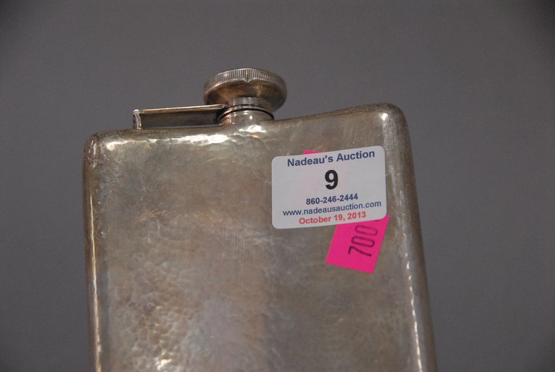Large sterling flask monogrammed JDC, 10.4 t oz.