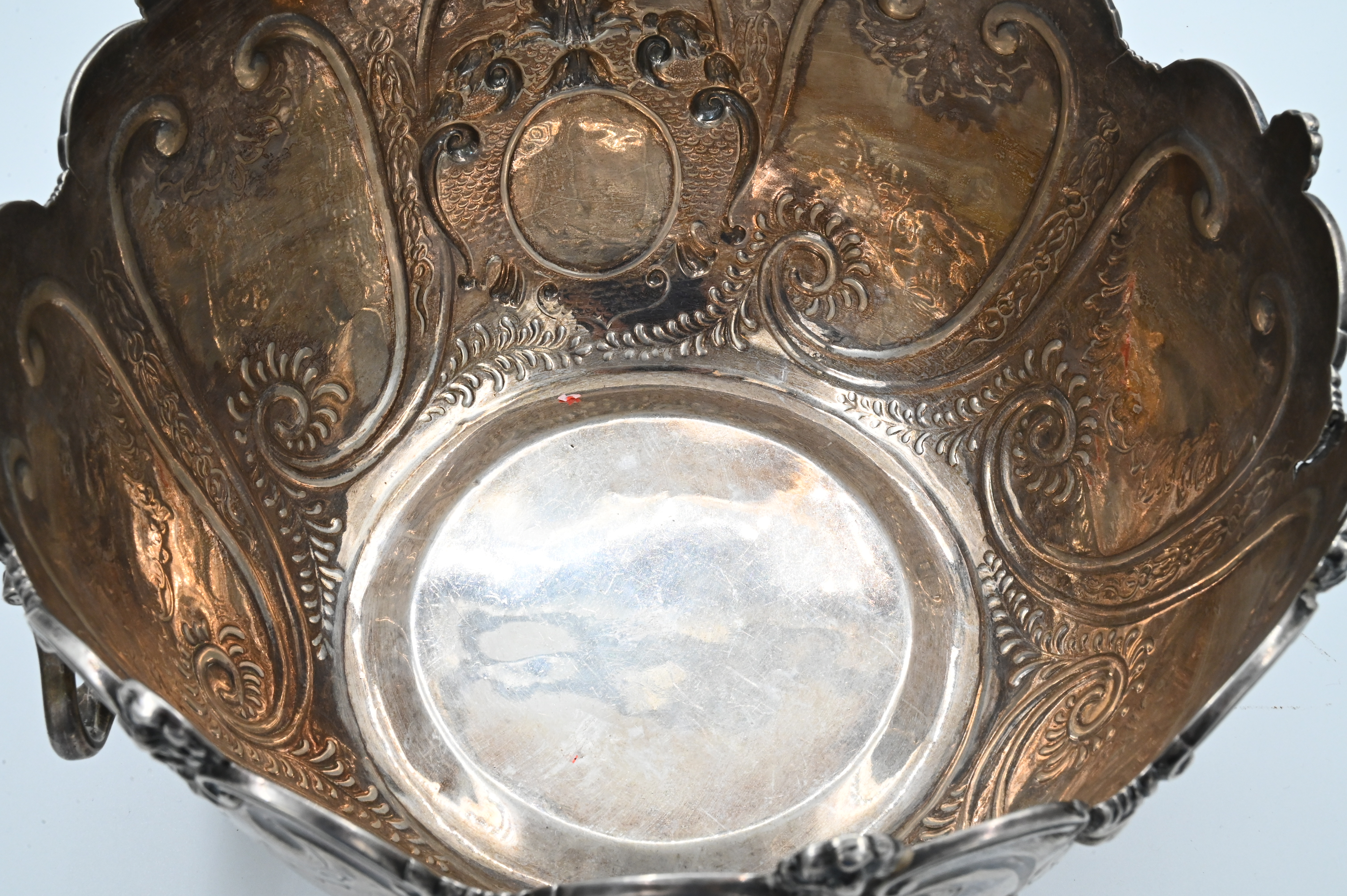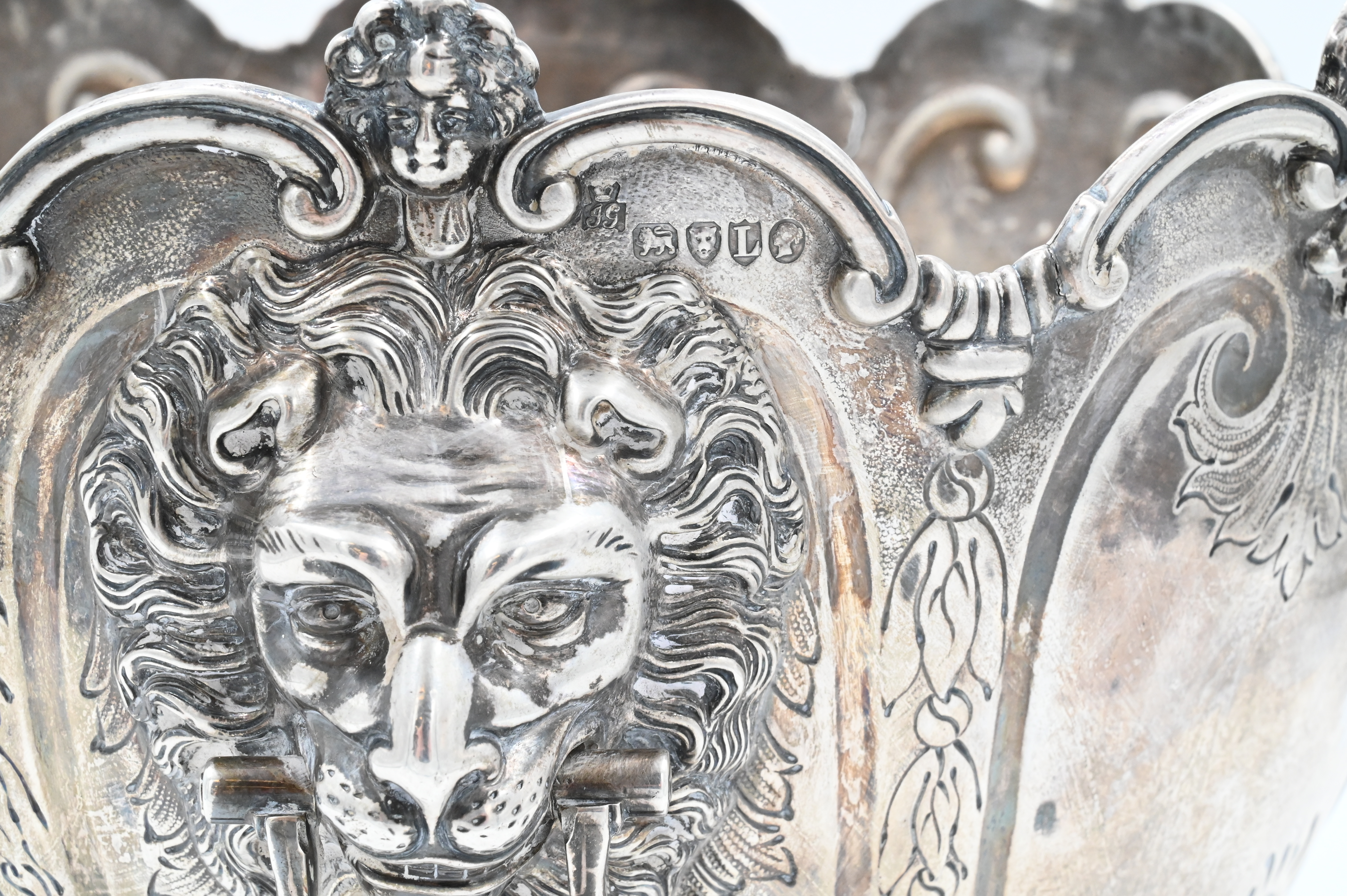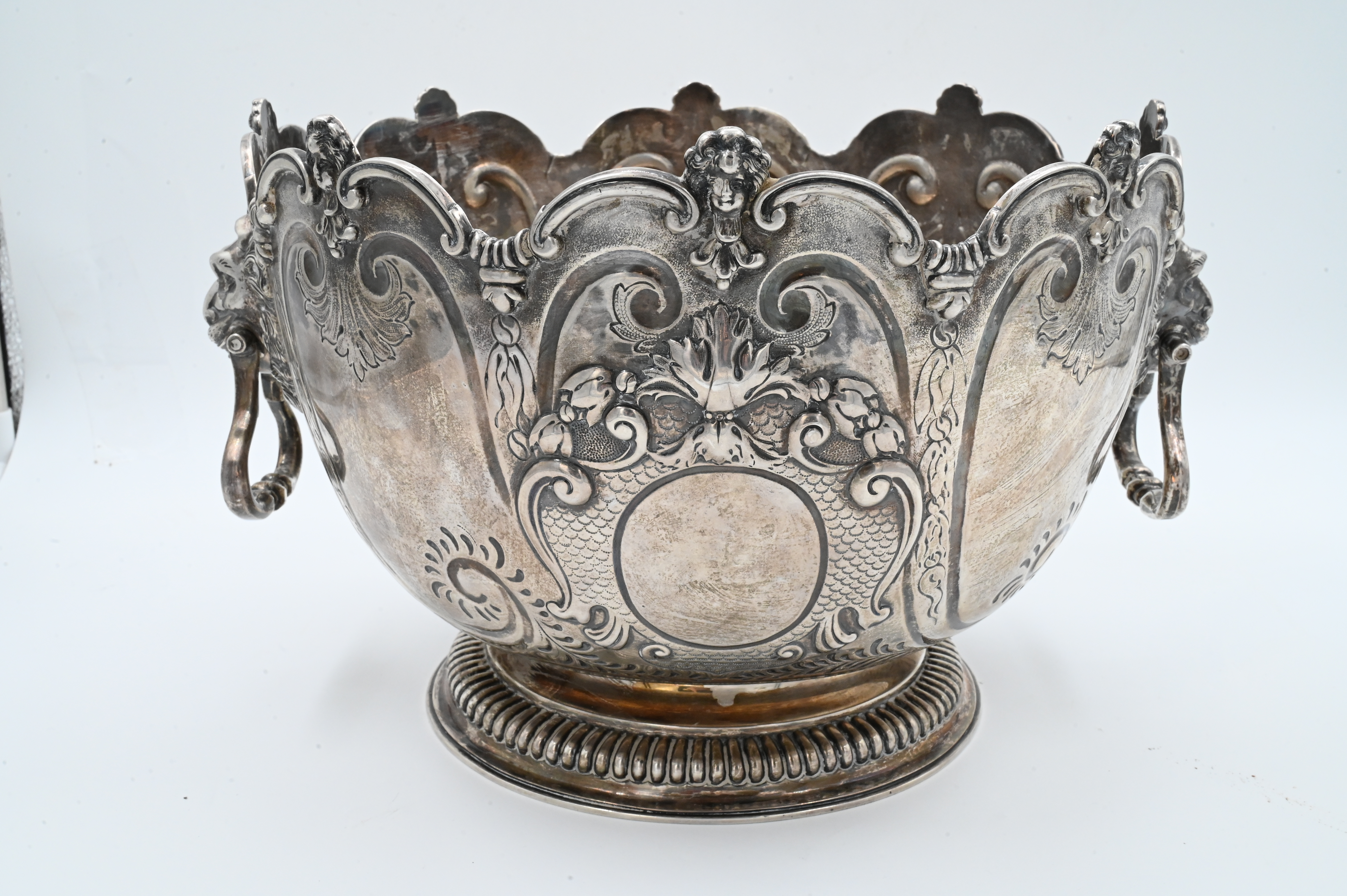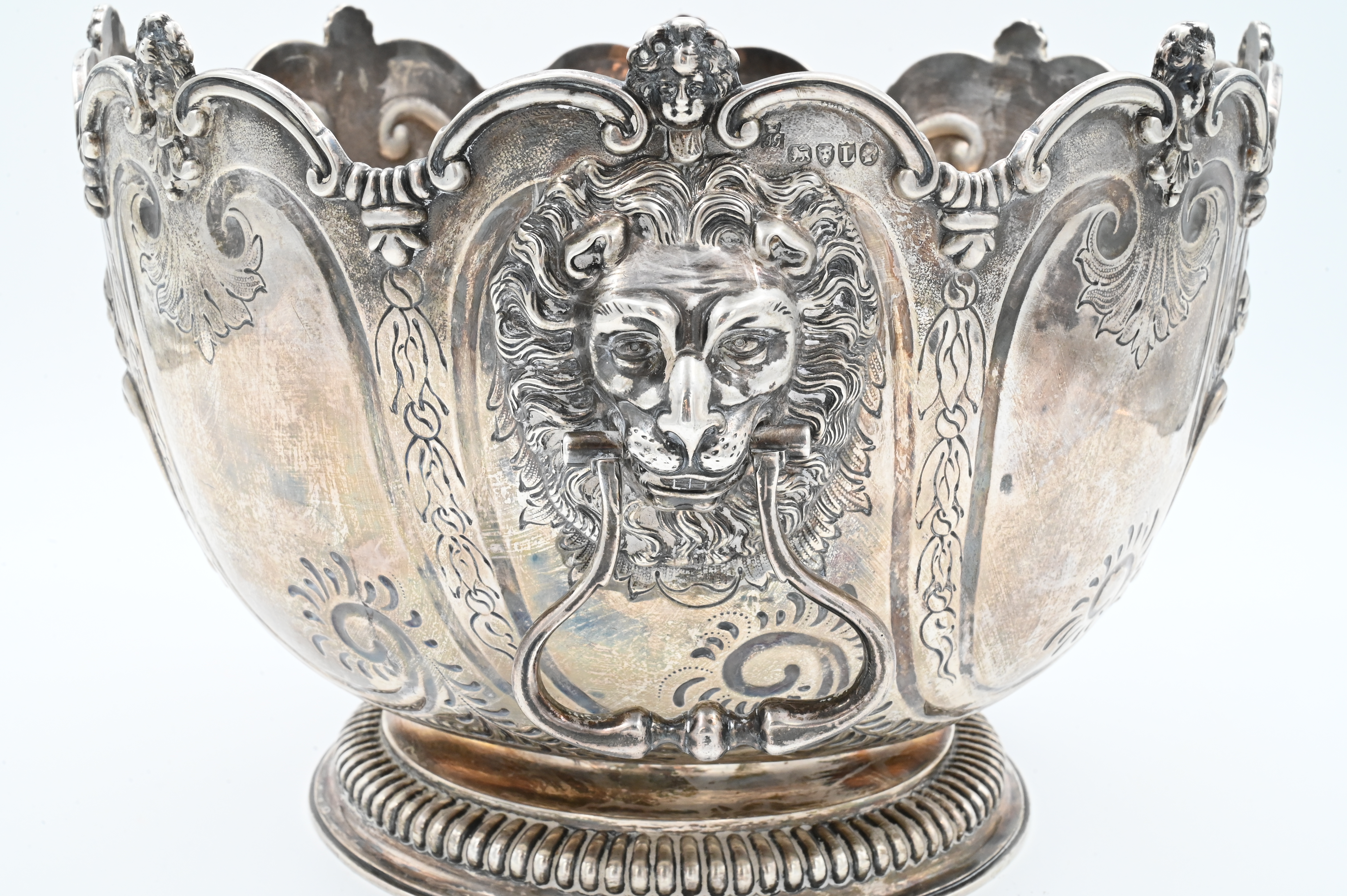 Lot 9: Monumental English Sterling Silver Monteith Lion Handle Bowl