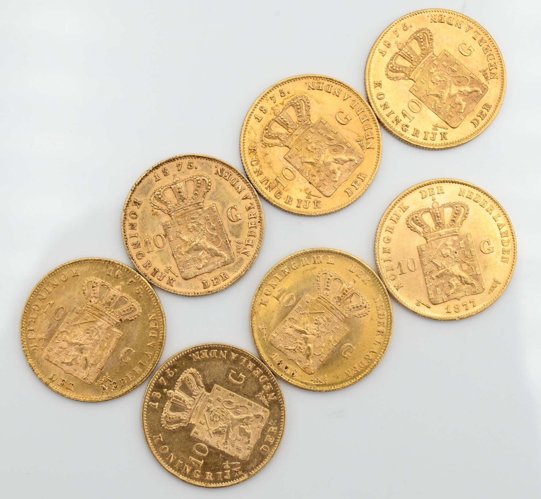 Seven Dutch 10 Guilder Uncirculated Gold Coins, 47 gr.