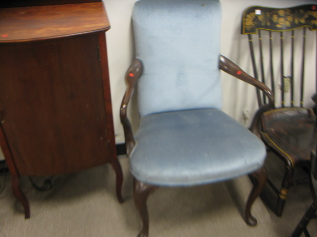 Three piece lot to include commode, music cabinet and a Queen Anne style armchair