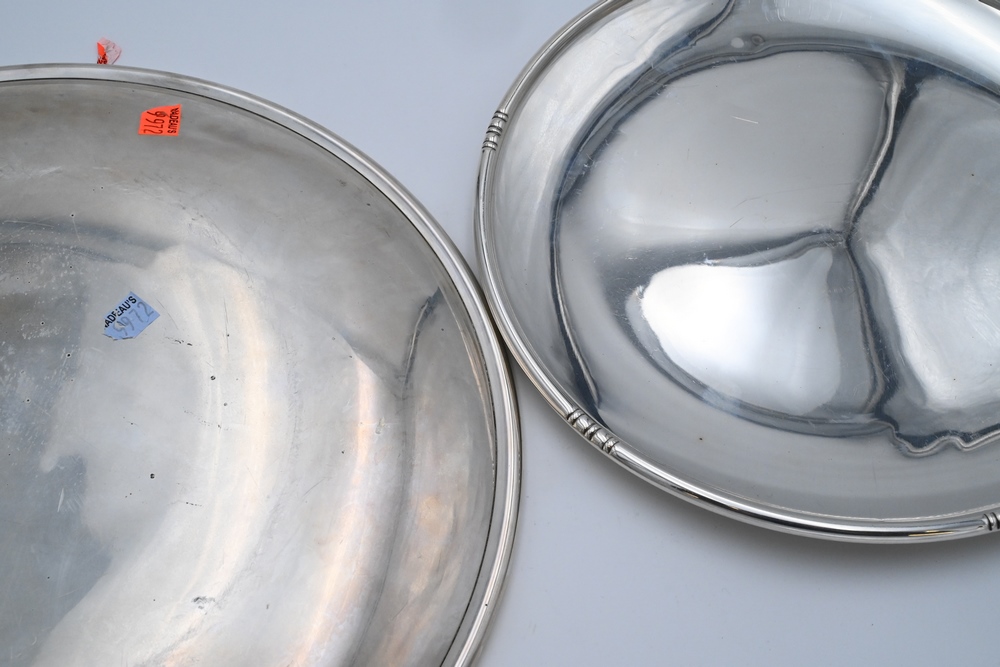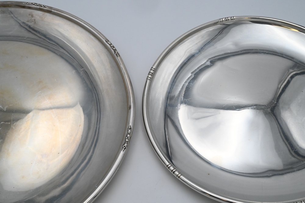 Lot 9: Two Large Sterling Silver Round Trays each having near matching edge marked sterling diameter 15 3/4 inches 57.7 t.oz.