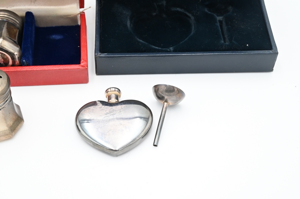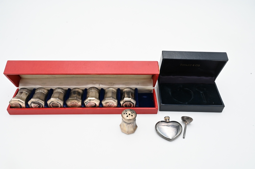 Lot 9: Two Piece Lot, to include Cartier sterling salt and pepper shakers in the original box, along with a Tiffany & Company sterling heart.