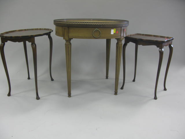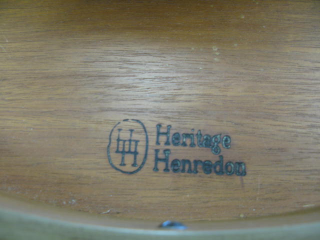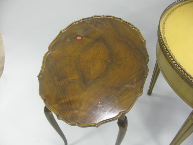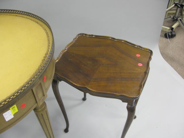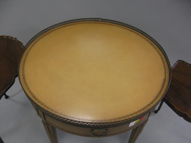 Heritage Henredon French style leather top round drum table along with second two tier stand