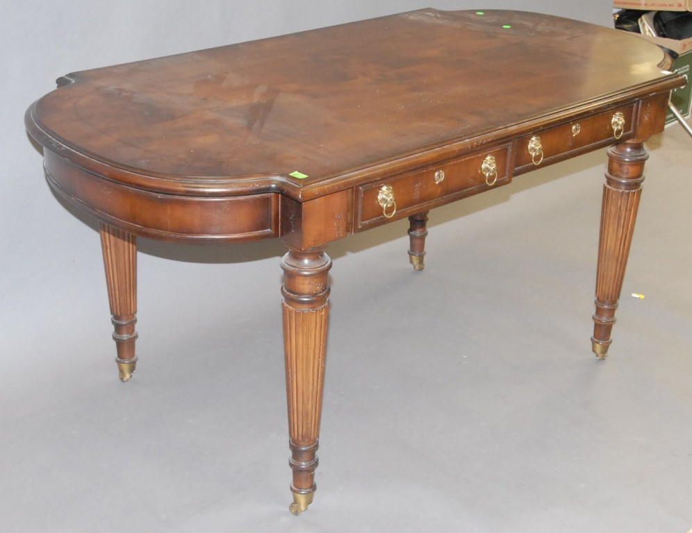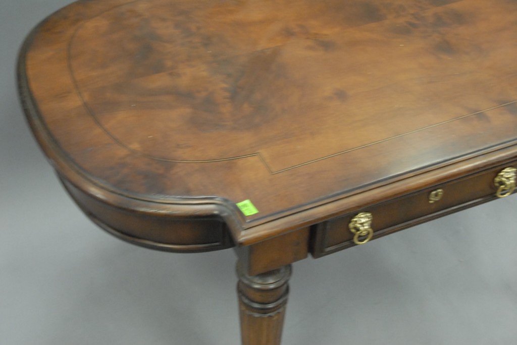 Inlaid writing table with two drawers, ht. 30, wd. 59.