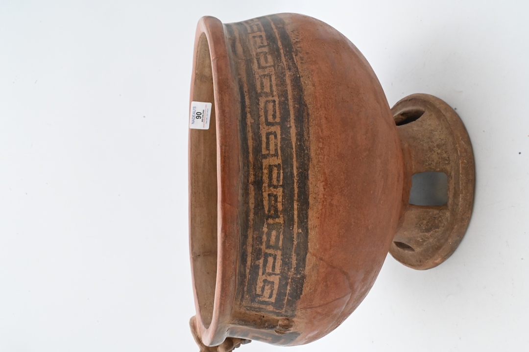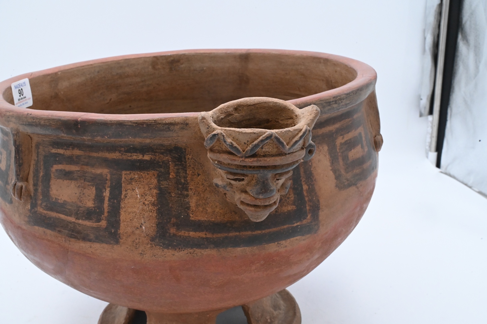 Large Glazed Ceramic Painted Offering Bowl, Central America, height 10 inches, diameter 14 inches, repaired. Provenance: Sophie Marvo, 1960’s.