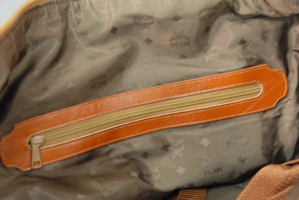 MCM leather signature large duffle bag with side pockets. height 18in. length 20in.