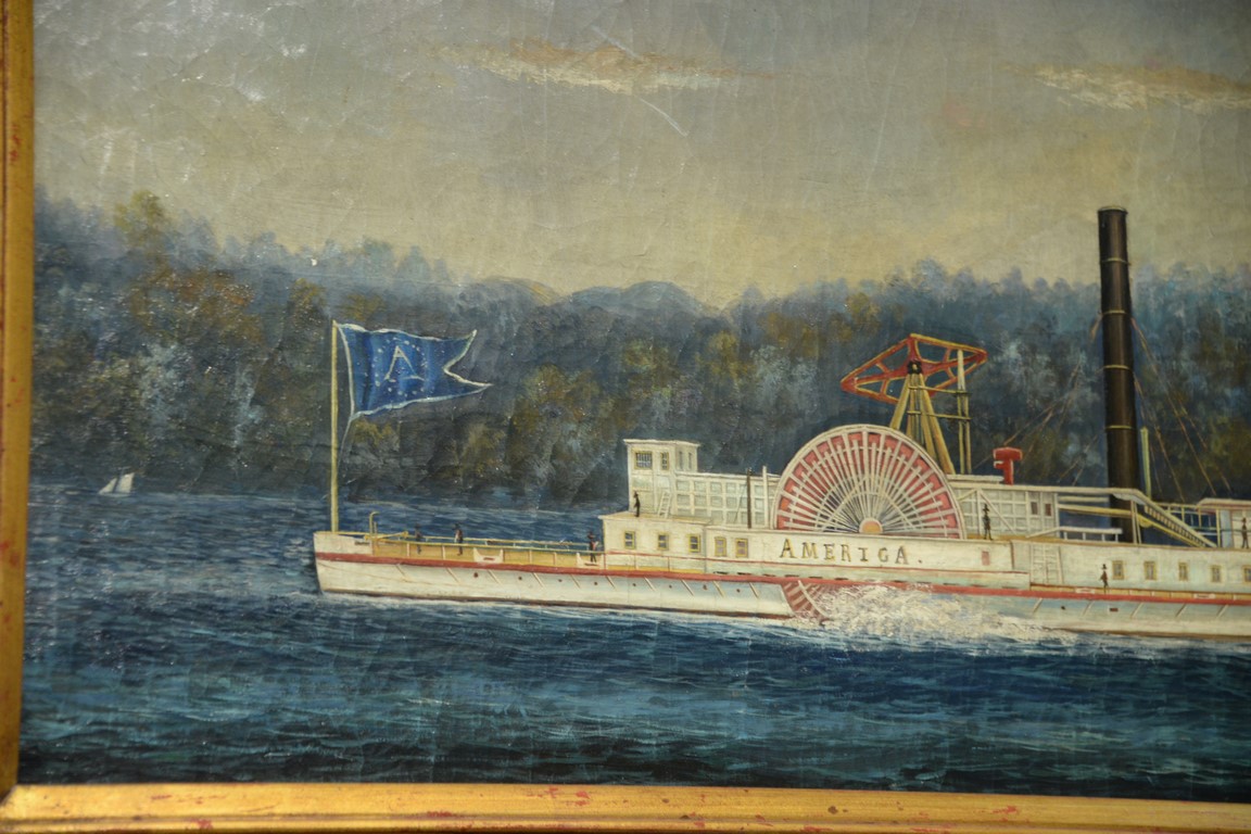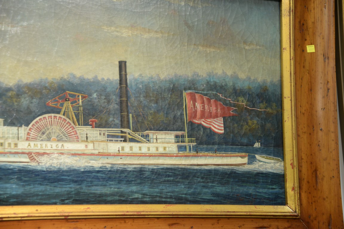 Paddle Wheeler Ship oil on canvas America probably 20th century 18 x 40