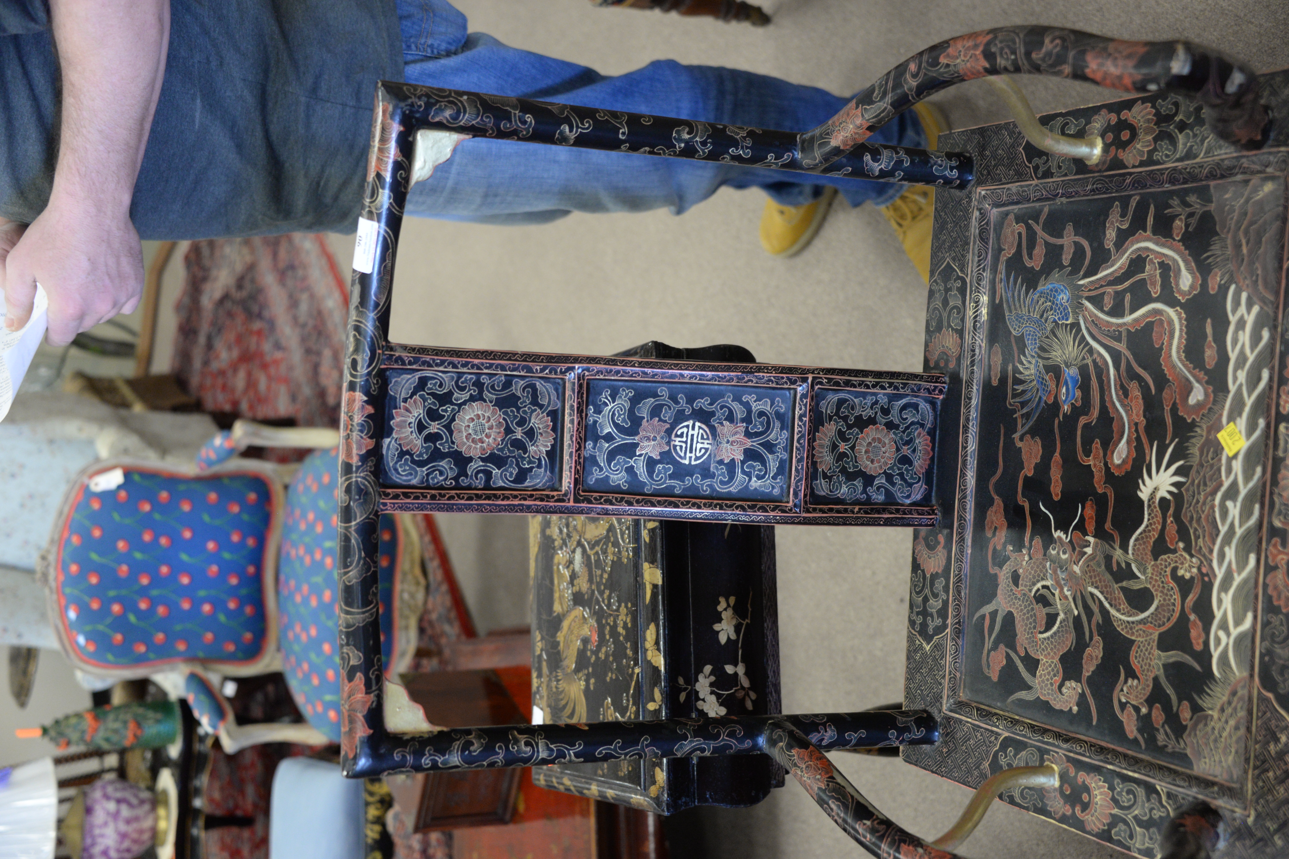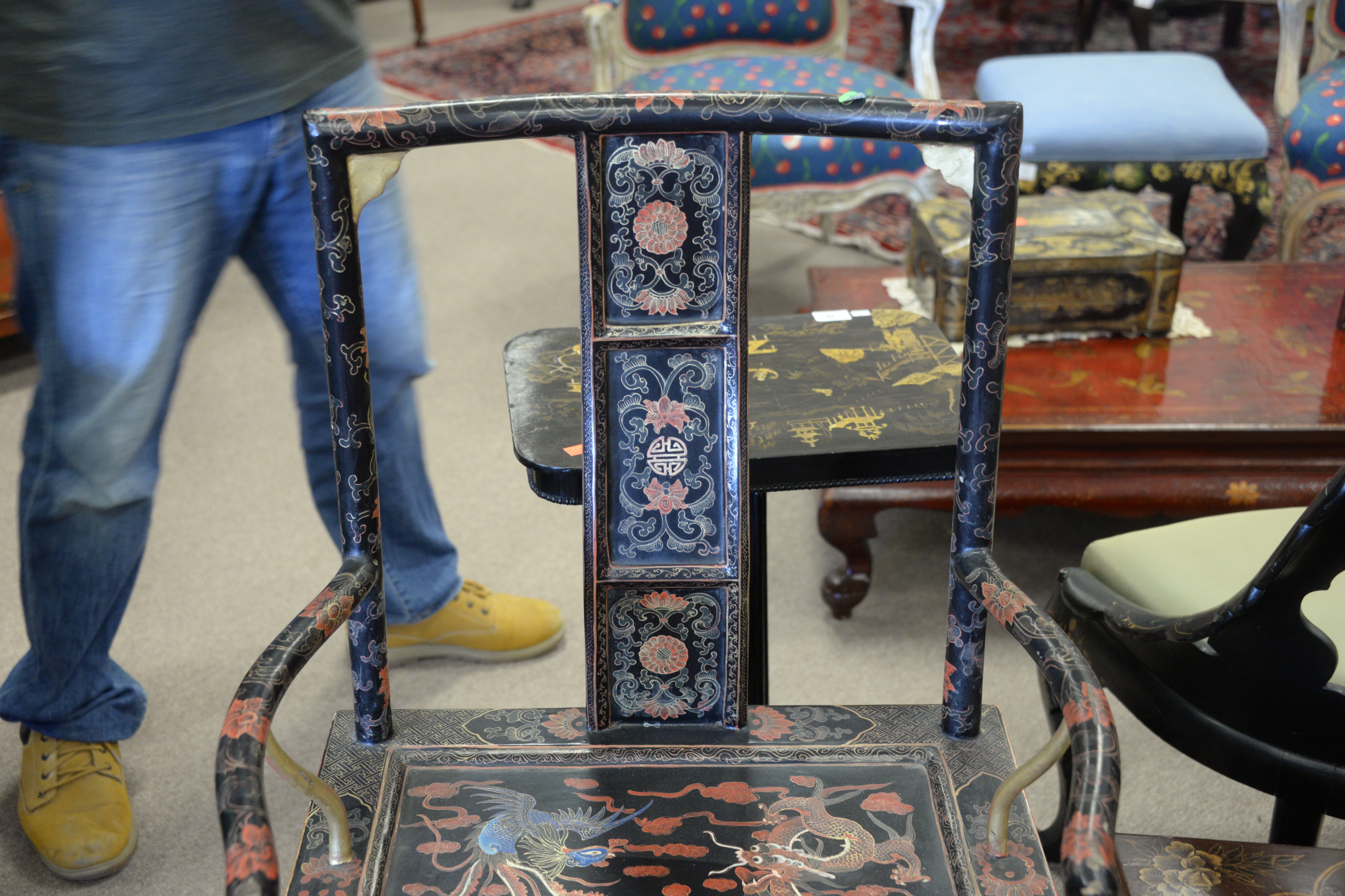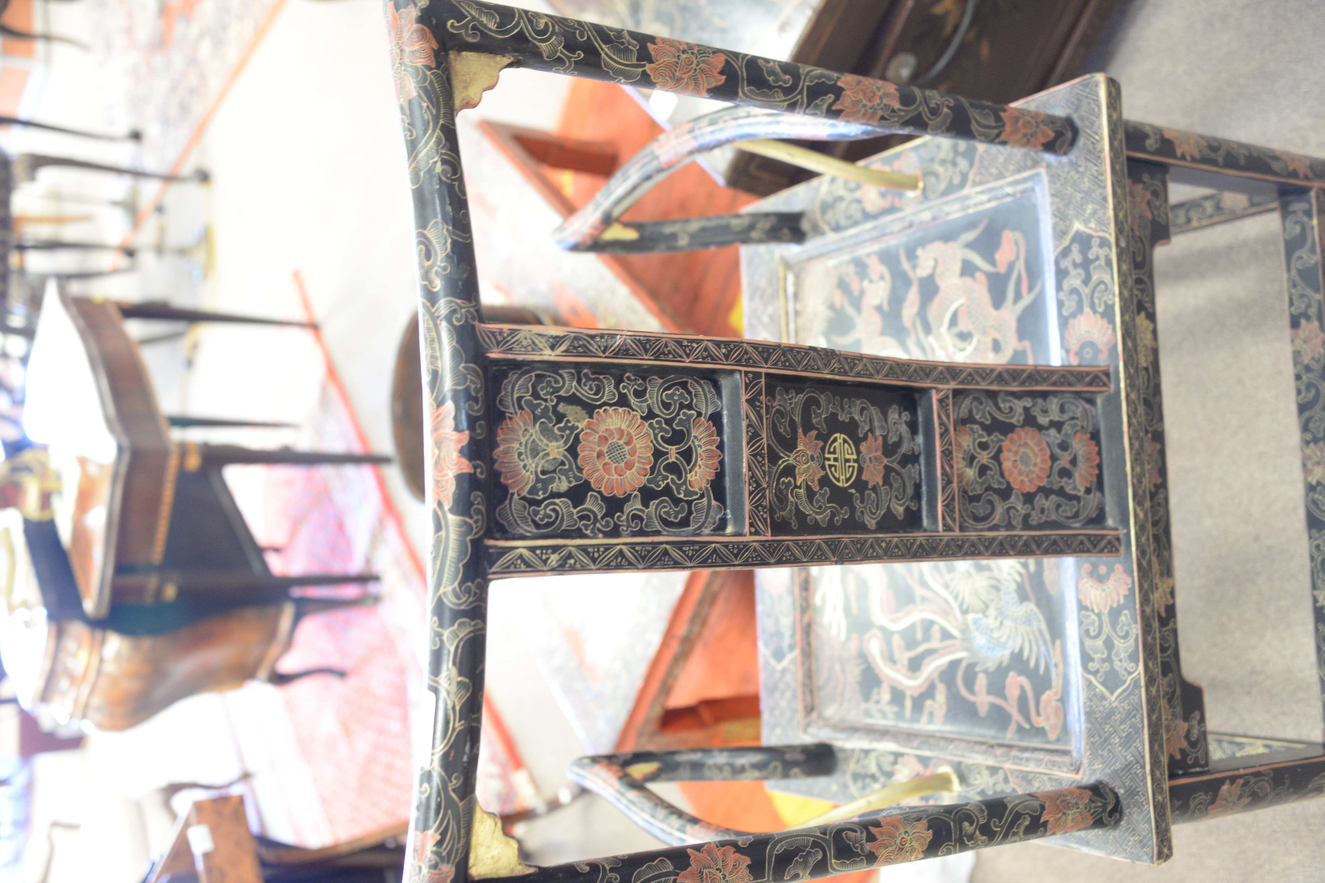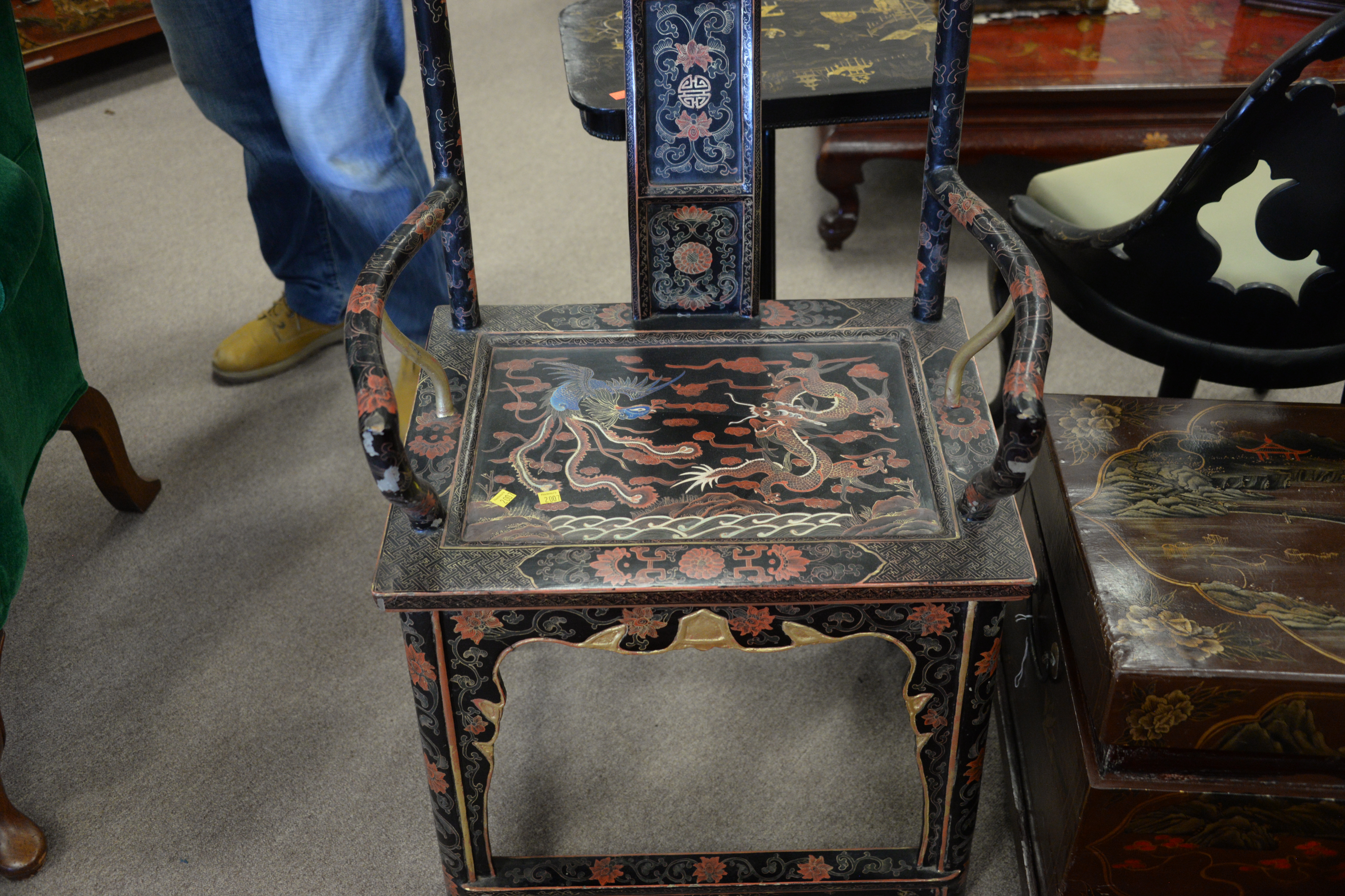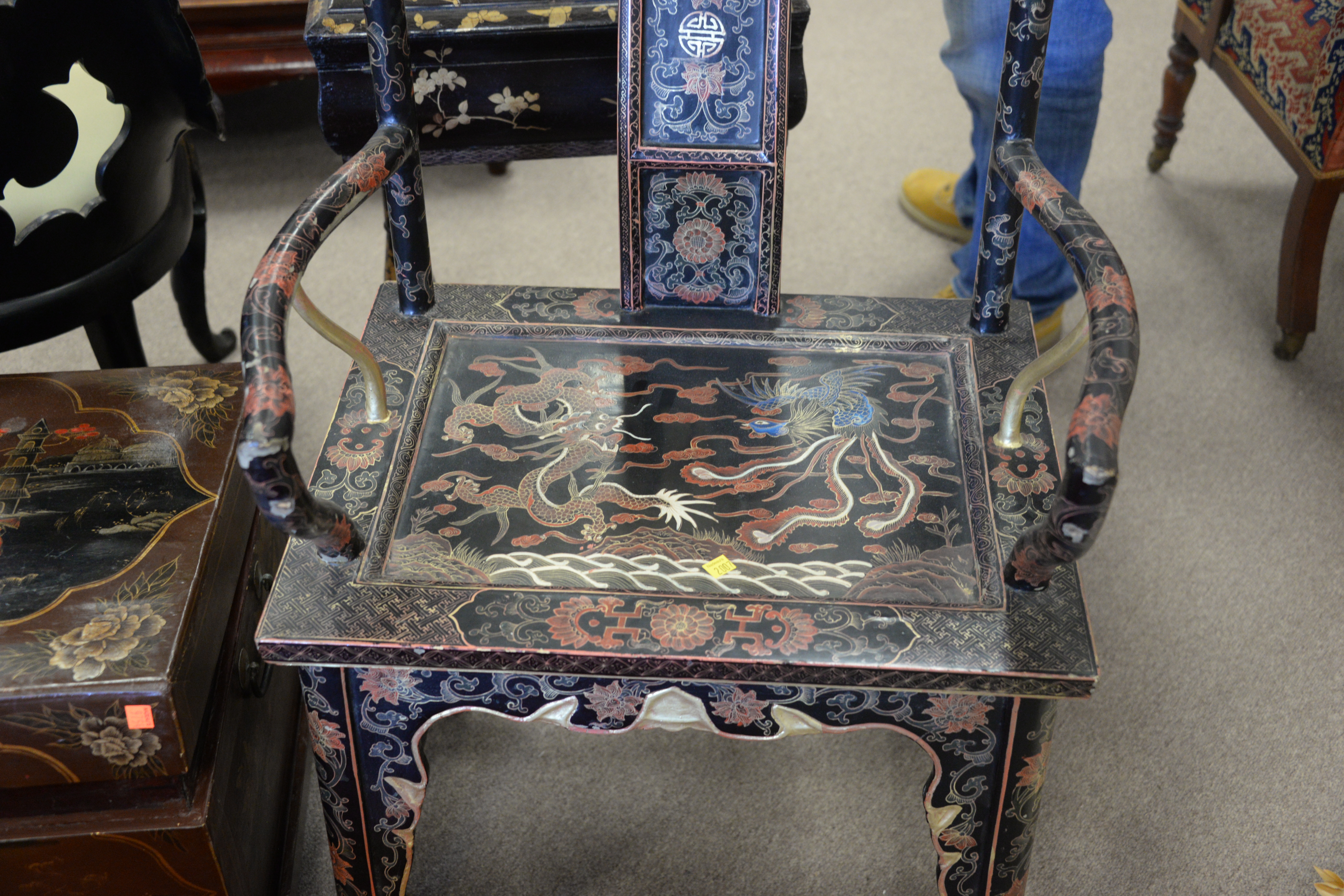 Pair of Chinese Armchairs, paint decorated with dragon, bird, and flowers, height 42 inches.