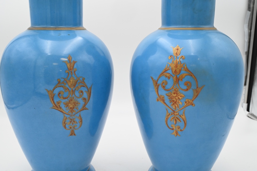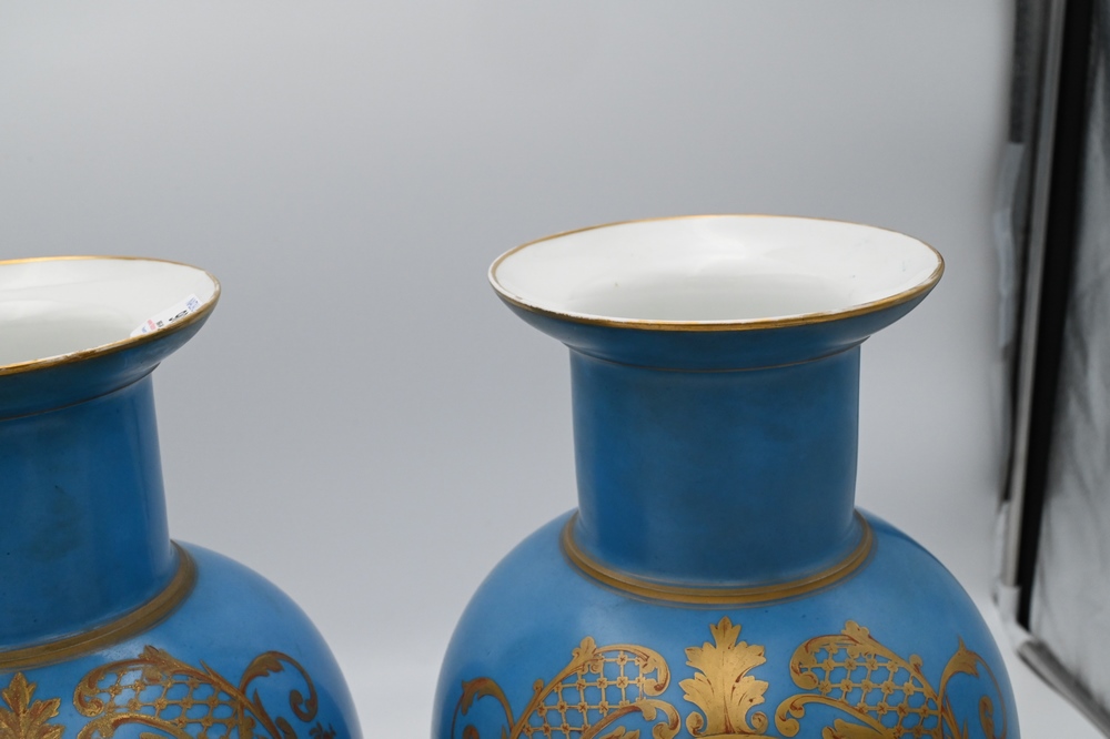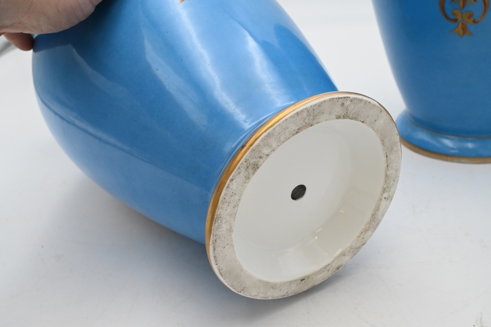 Pair of Paris Porcelain Vases, both having oval female portraits, both drilled, height 16 inches.