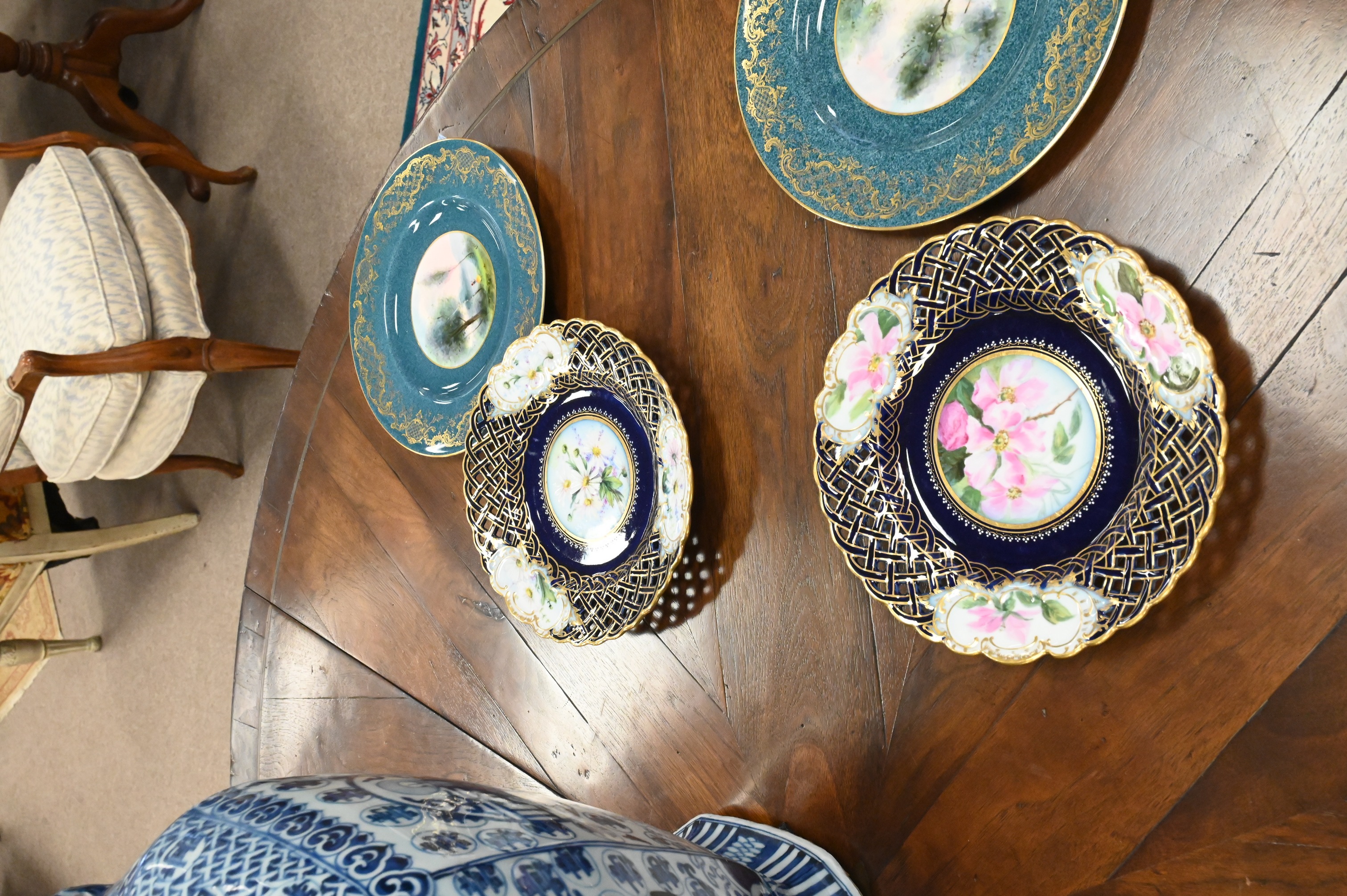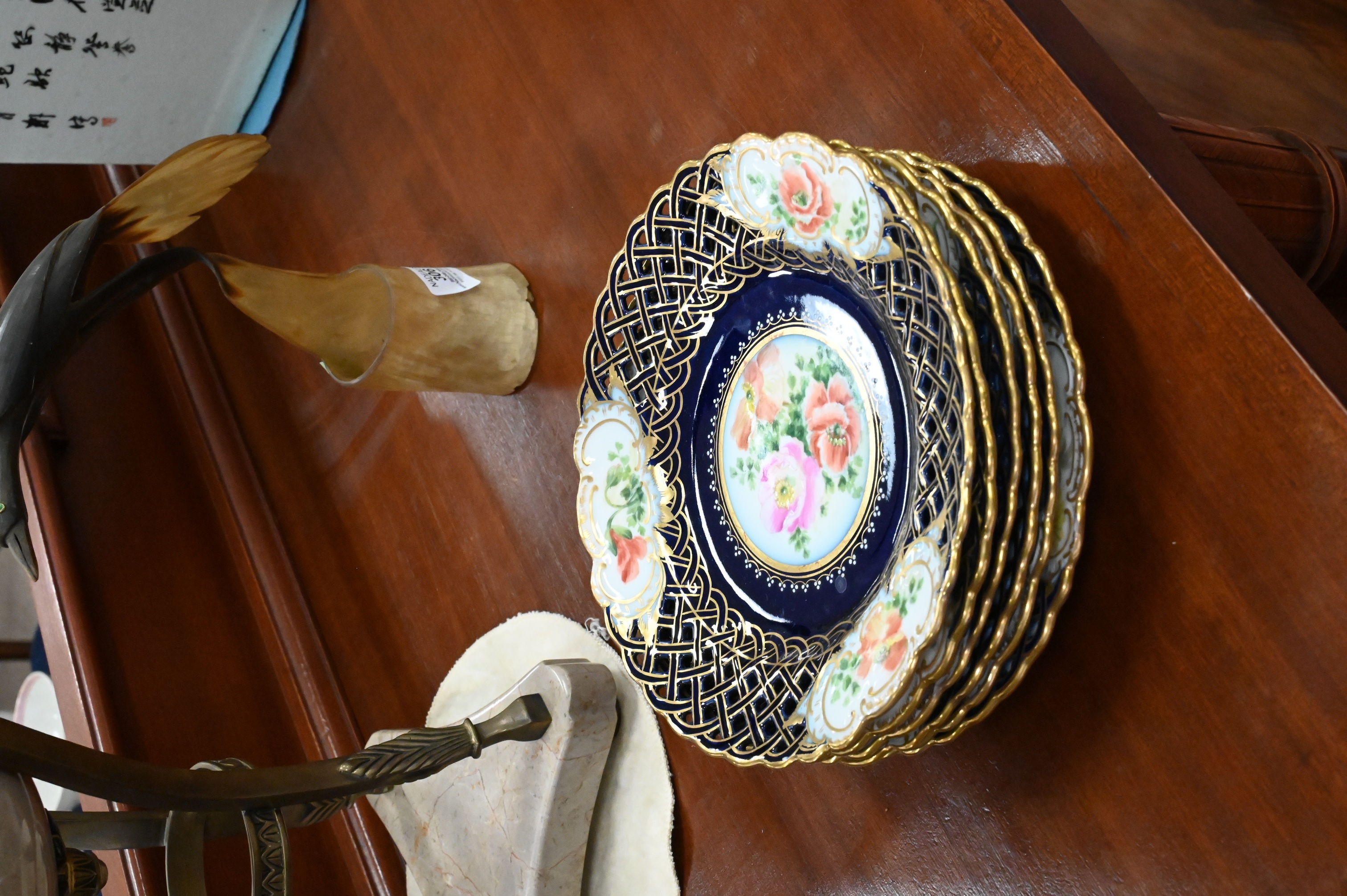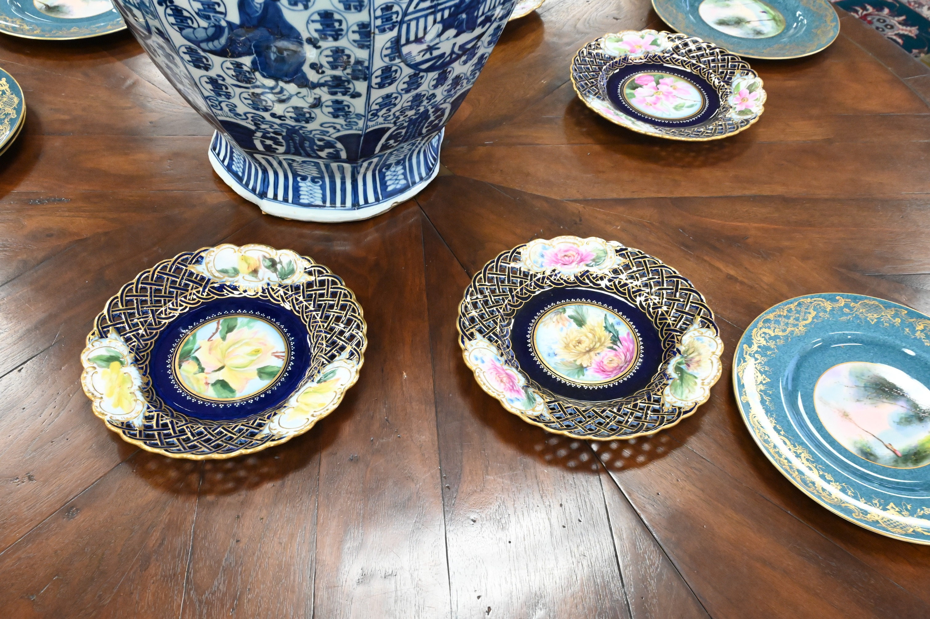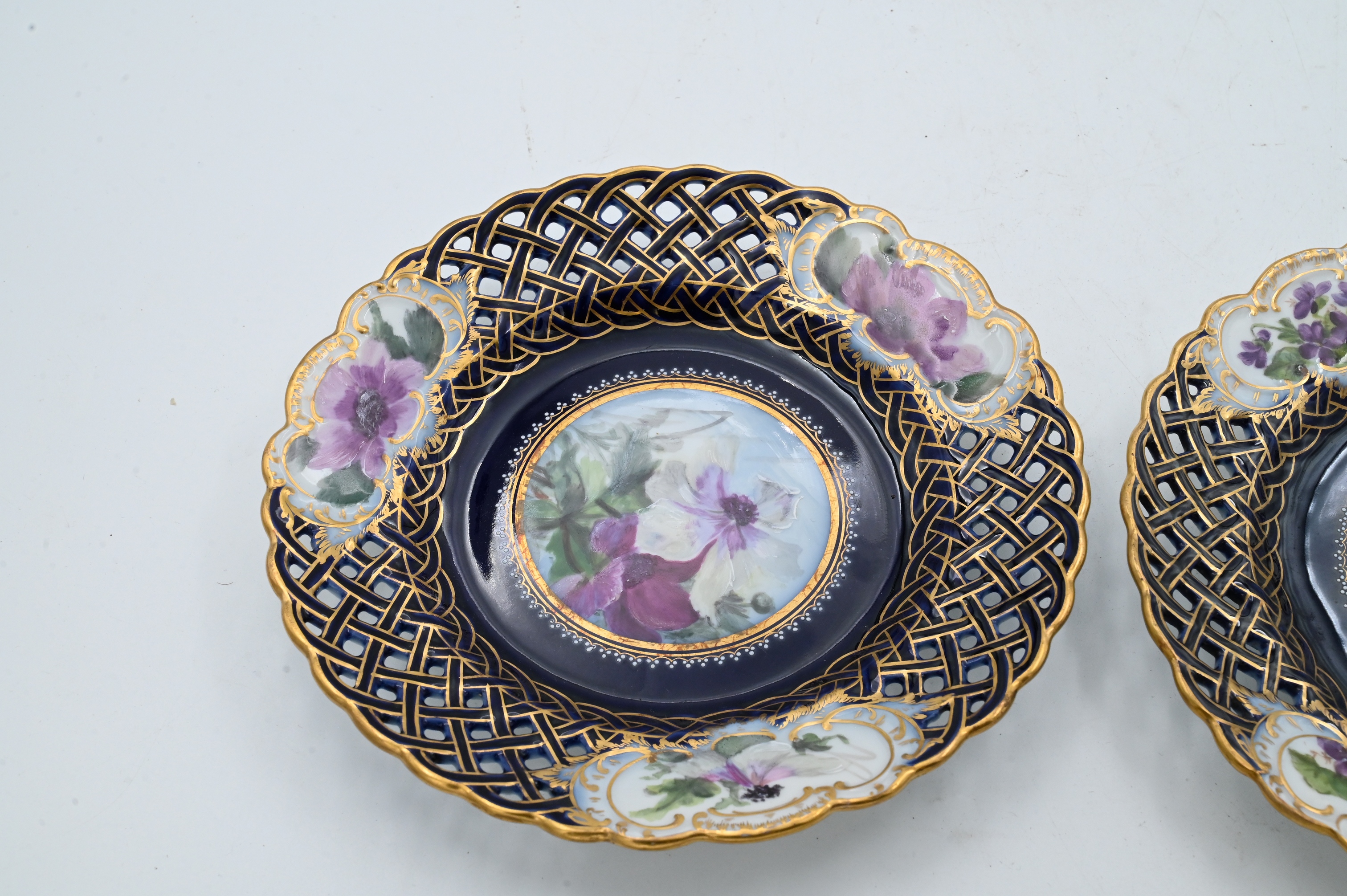 Lot 90: Set of 12 Meissen Style Cobalt Blue Reticulated Flower Plates