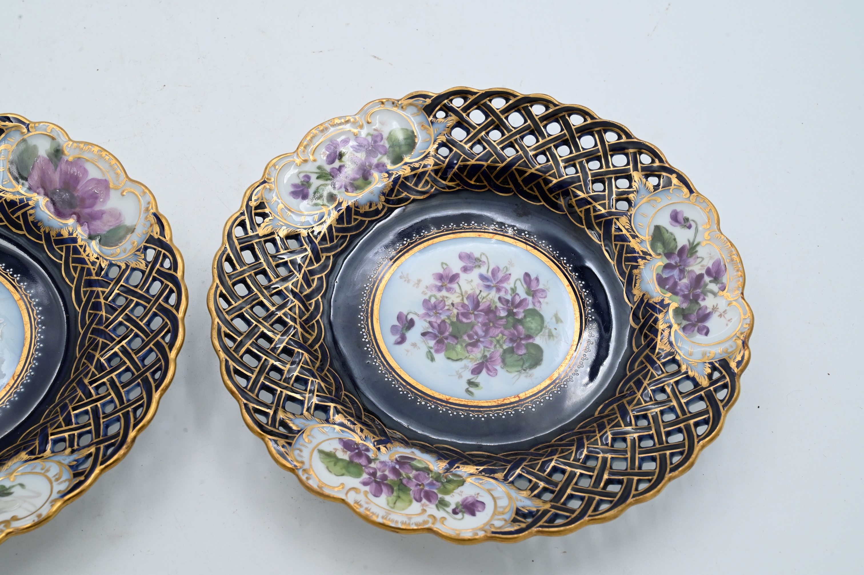 Set of 12 Meissen Style Cobalt Blue Reticulated Flower Plates