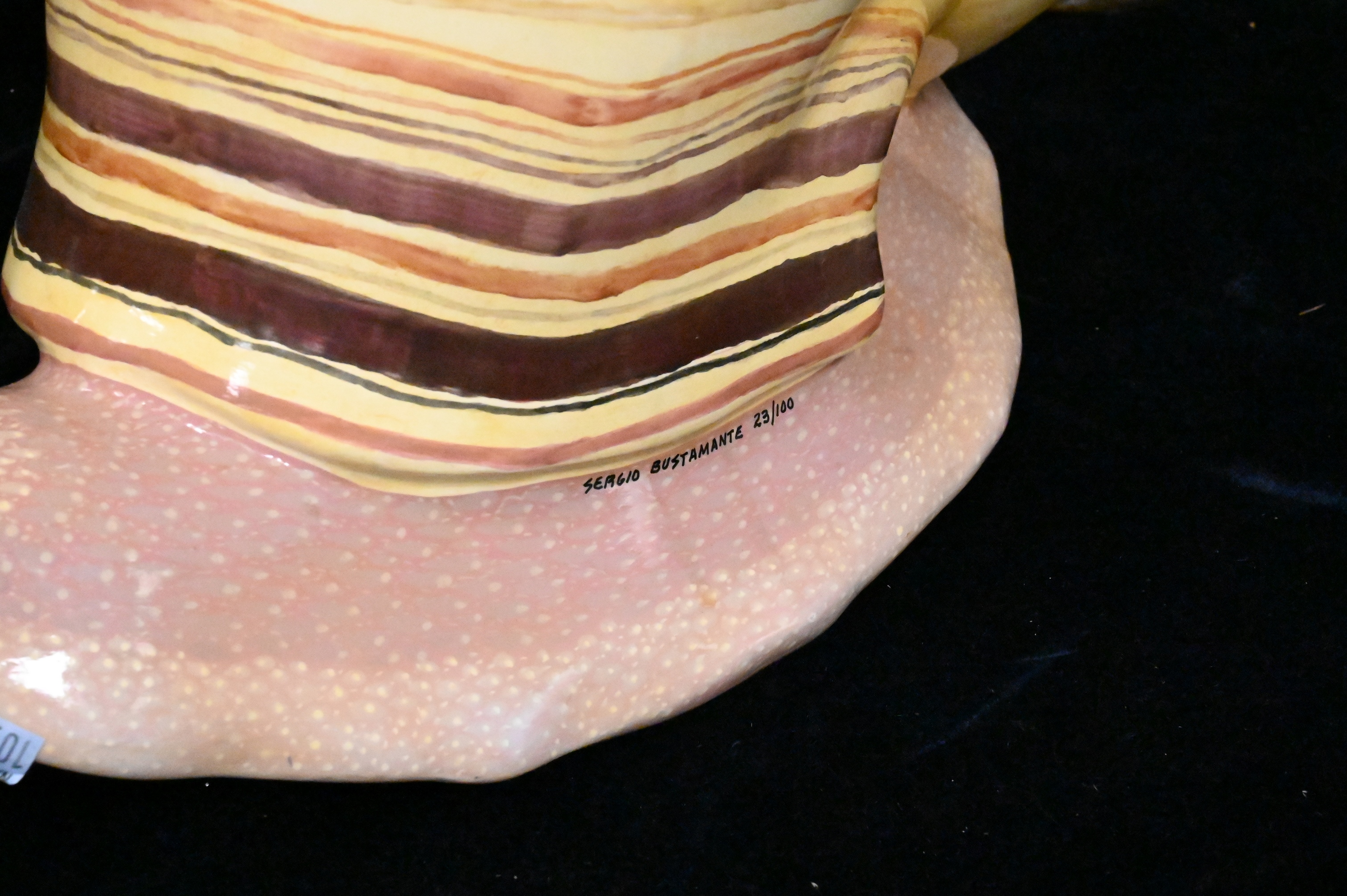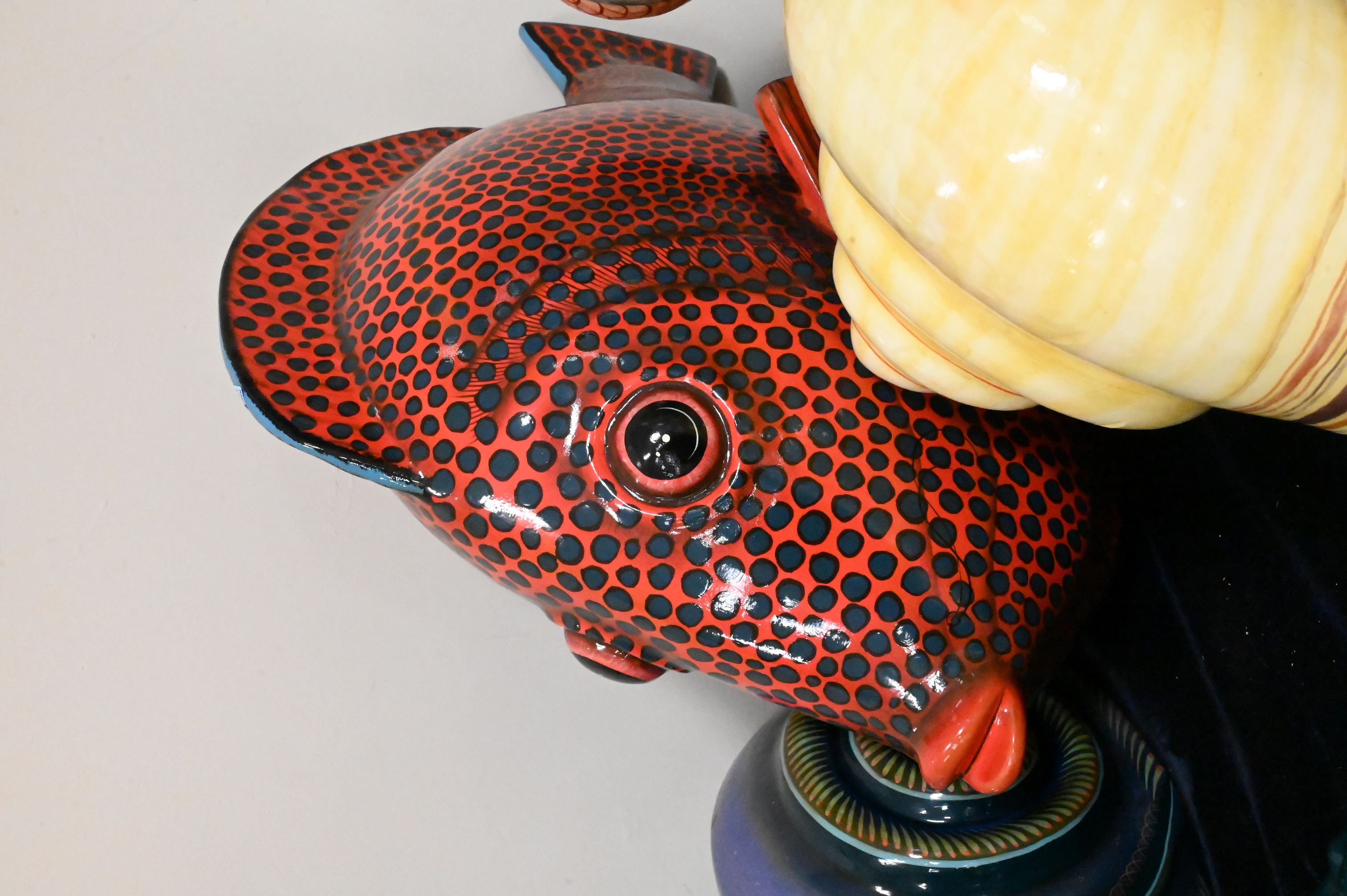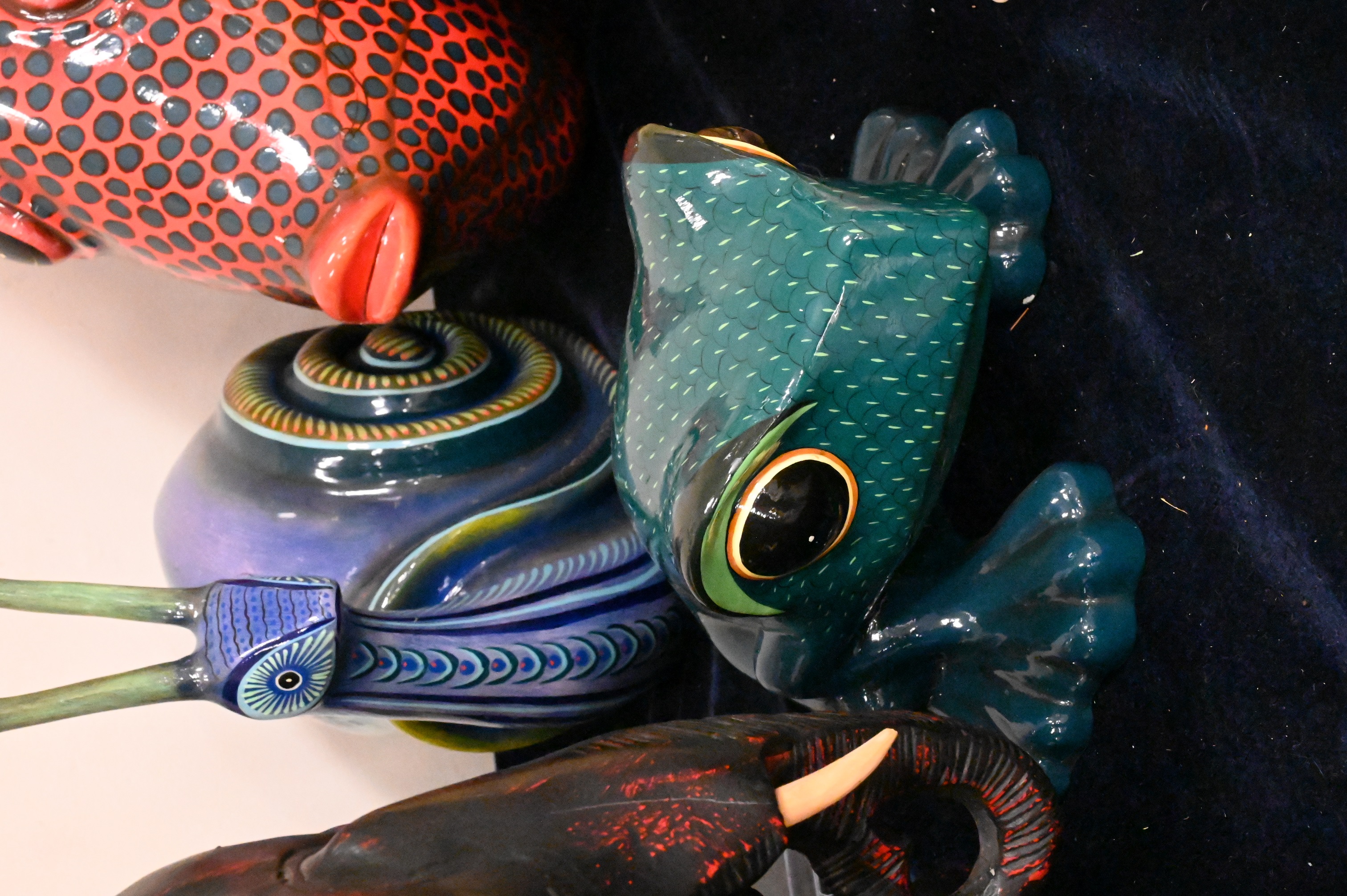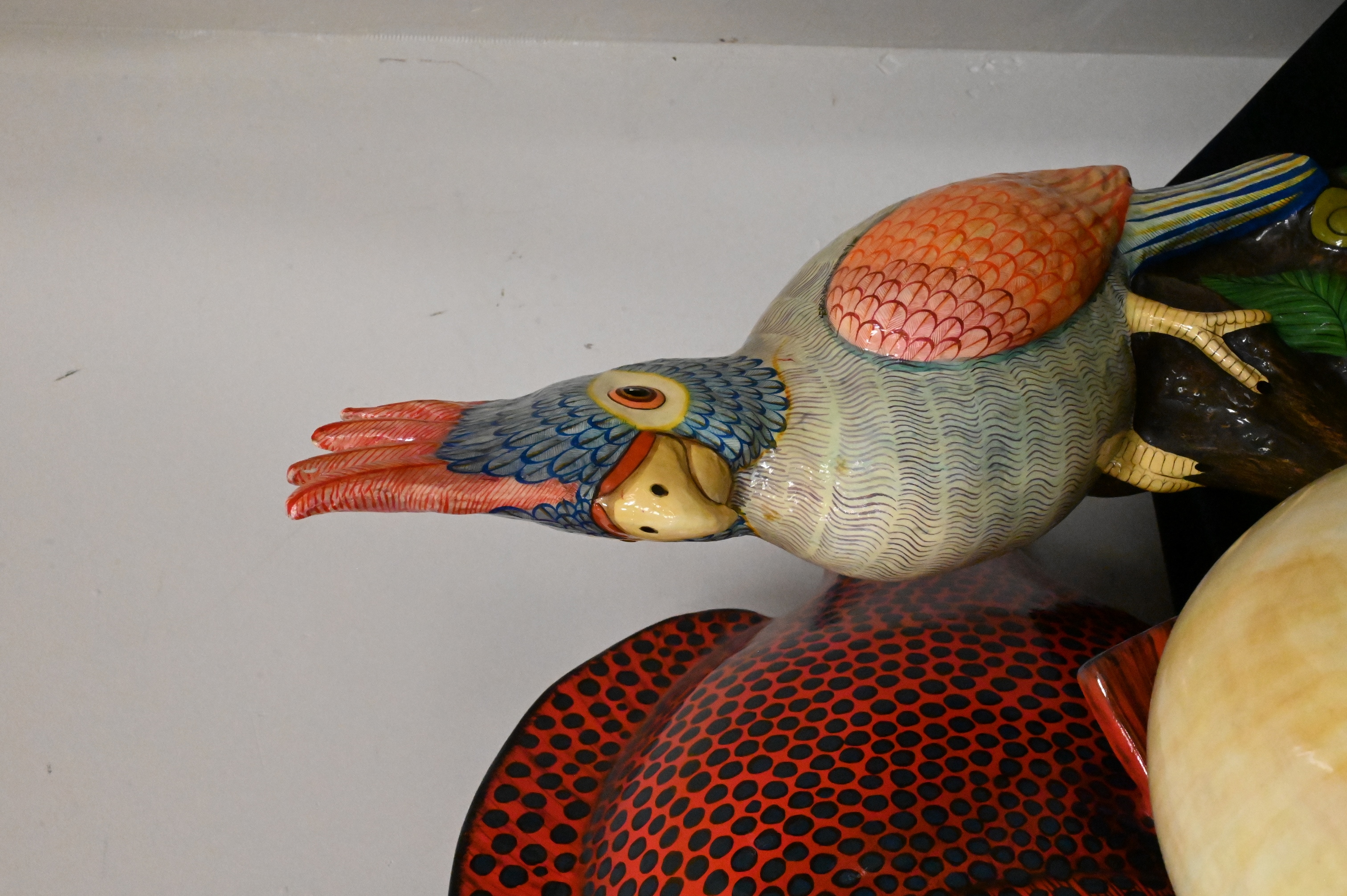 to include five paper mache animals signed illegibly, brass seahorse, Maitland Smith elephant stool