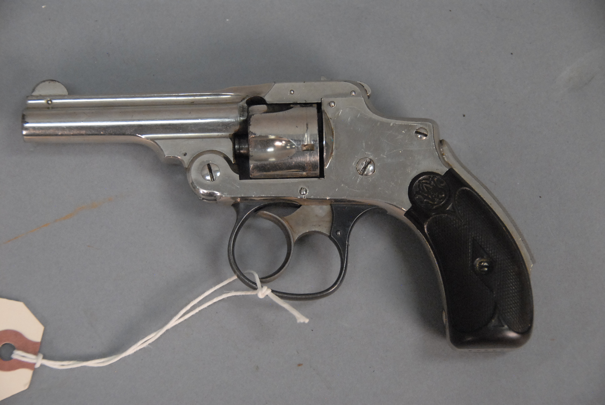 Lot 90: Smith & Wesson revolver, 1877 model, 5 shot with grip safety, nickel plated with 3 barrel, s/n 52554.