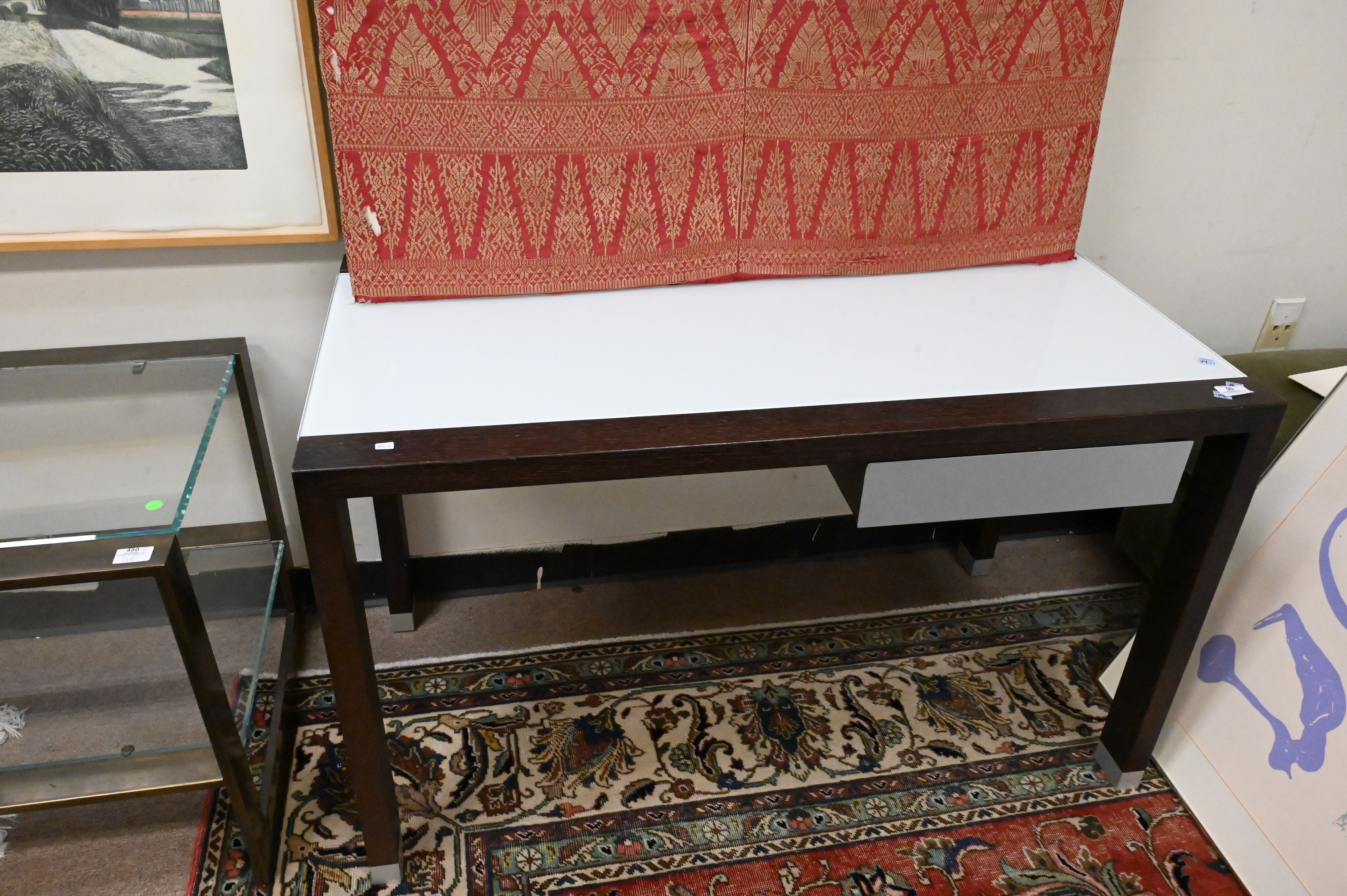 to include glass top desk along with two tiered glass top side tables