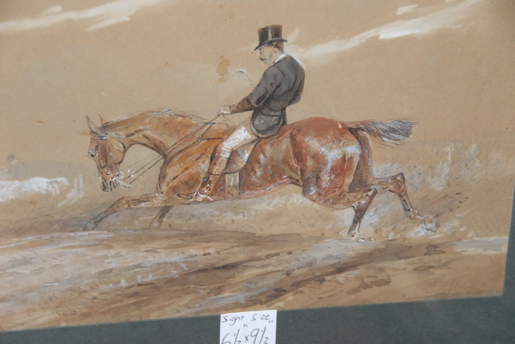 HORSE WITH RIDER watercolor signed lower right J. F. H. sight size 6 1/2 x 9 1/2